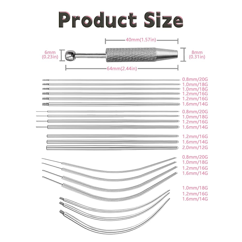 【أحجام دقيقة لملاءمة مثالية】تم معايرة أحجام الإبر الثقب لدينا بدقة لضمان الدقة العالية، مما يوفر ملاءمة مريحة وآمنة دون إزعاج. هذه الأدوات الثاقبة الأساسية تجعل العملية سلسة. ما عليك سوى التأكد من أن أحجام المنتج الموجودة في عبوتنا تلبي احتياجاتك أثناء الدفع.