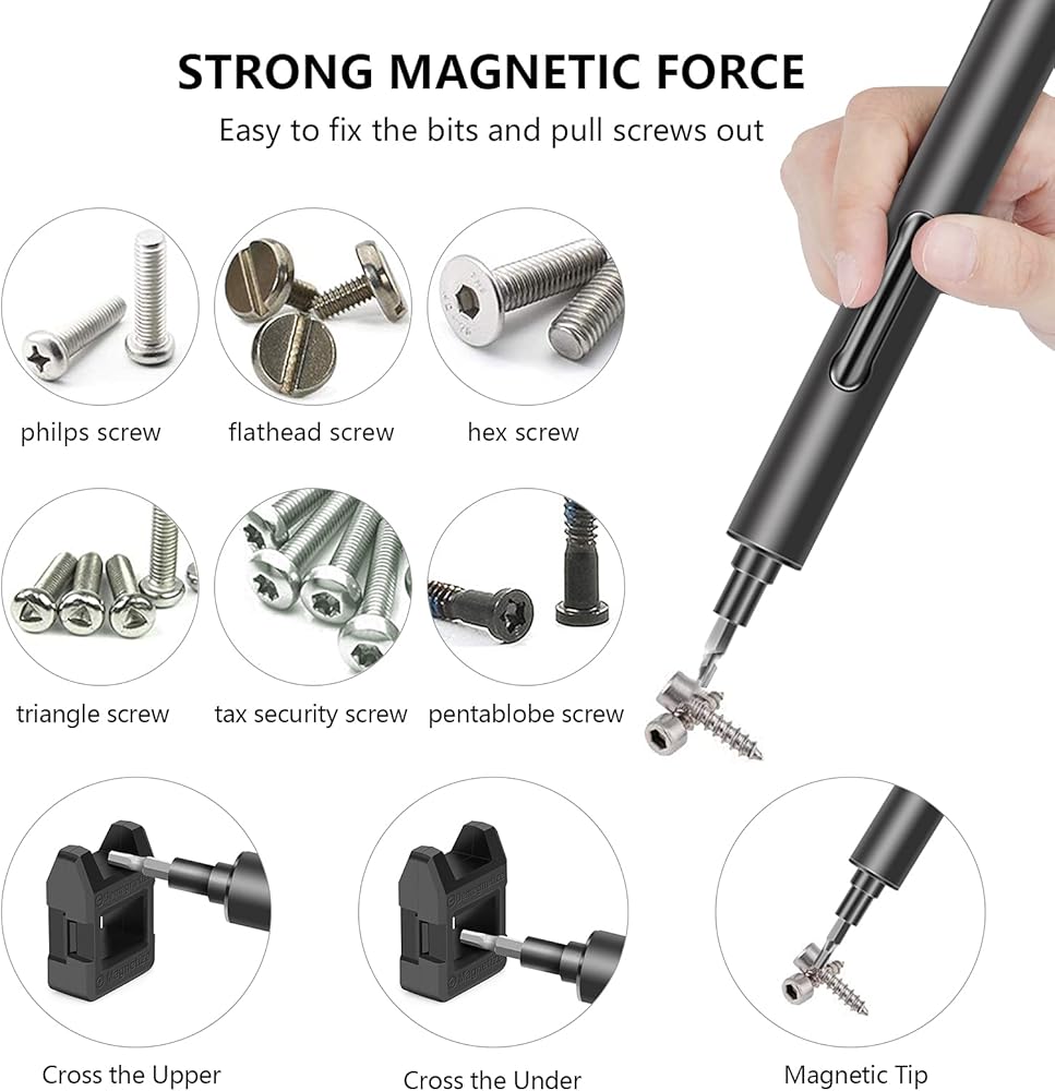 هل ما زلت منزعجًا بشأن استخدام مفكات البراغي العادية لإصلاح بعض المكونات الصغيرة؟ تعال وألقِ نظرة على مفك البراغي الكهربائي باورجينت والدوران ثنائي الاتجاه والإضاءة مع 3 مصابيح LED عند العمل. 55 قطعة براغي بمواصفات مختلفة تساعدك على إصلاح الأجهزة الإلكترونية المختلفة.