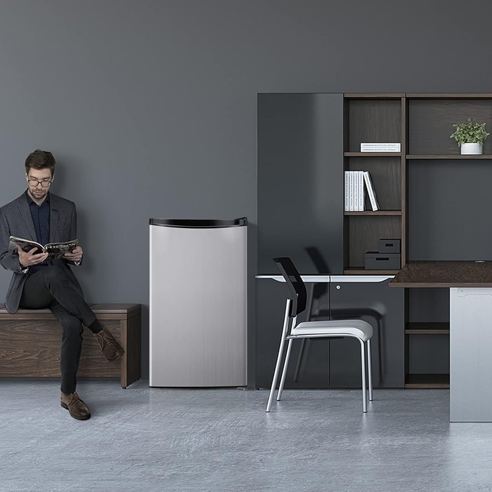 ENERGY SAVING & LOW NOISE: Energy Star compliant, this small refrigerator uses R600a high-efficiency and low-energy consumption compressor, only 0.56 kWh per day, more economical; the noise is 37 db, it won't interrupt your work or study, really suitable for people who have quiet requirements for living and working environments