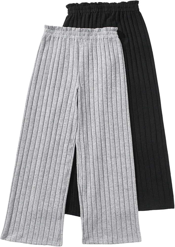 • Feature: 2 Pieces, Rib Knit, Paperbag Waist, High Rise, Straight Leg, Loose Fit, Solid, Long Length, Pants for Girls