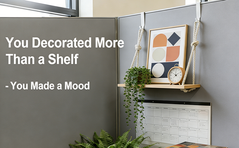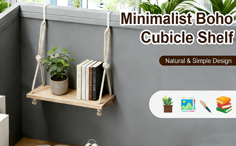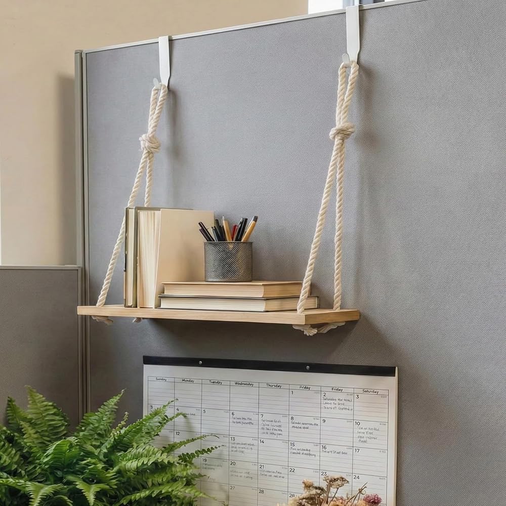 رف معلق على شكل حجرة، رف حائط على شكل حجرة مكتب مع خطافات حبل قابلة للتعديل، ملحقات مكتب لديكور المكتب، منظم، تخزين في أماكن العمل