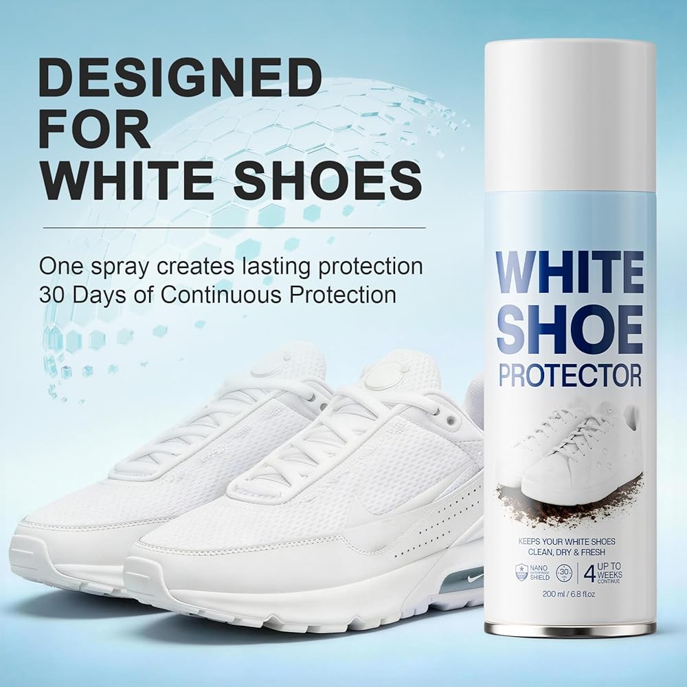 رذاذ واقي الحذاء الأبيض: حماية مقاومة للماء وطارد للبقع للأحذية البيضاء، والأحذية الرياضية، والجلود، والقماش، ودرع غير مرئي للارتداء اليومي، 6.8 أونصة