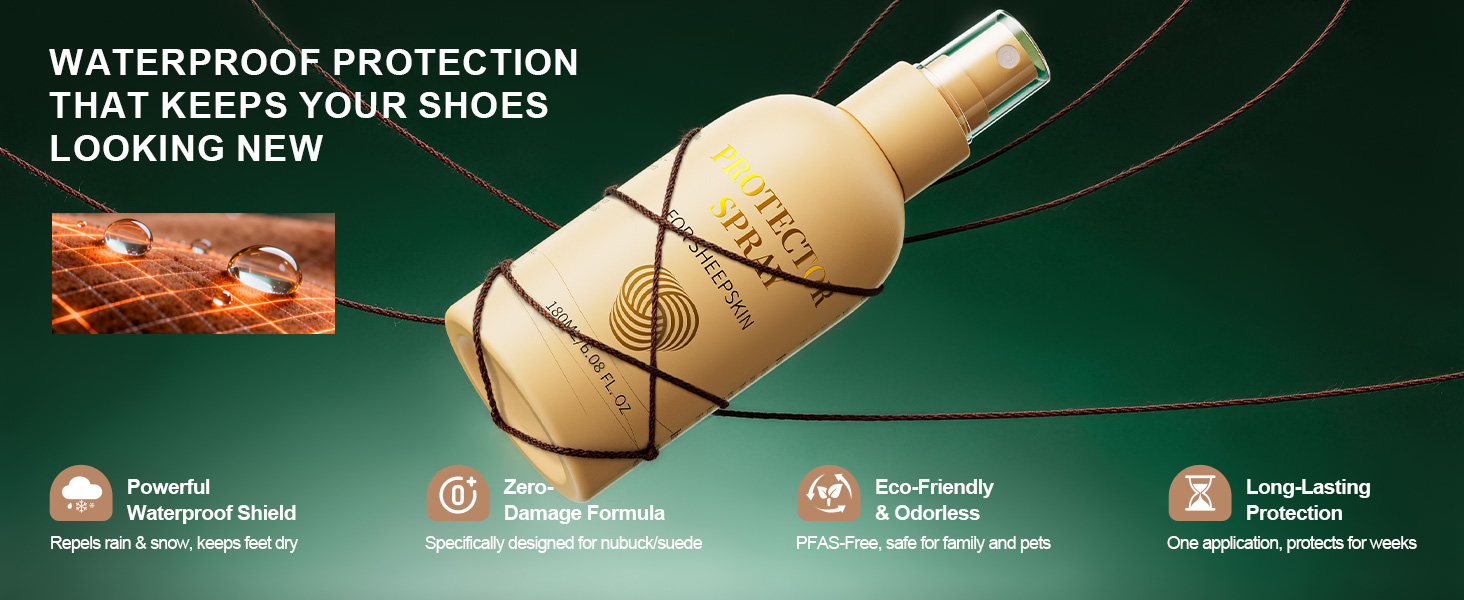 • مصمم للمواد الرقيقة: تم تصميم هذا الرذاذ خصيصًا للجلد المدبوغ والنوبوك والجلد الرقيق، وهو آمن للأحذية ذات الرقبة الطويلة والأحذية المسطحة والأحذية اليومية. لا يوجد تبييض أو تصلب أو بقايا - فقط حماية موثوقة تحافظ على مظهر حذائك وملمسه الأصلي.