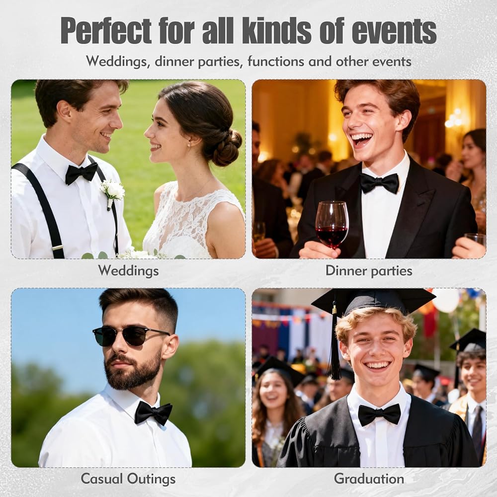 متعددة الاستخدامات لجميع المناسبات: تضيف ربطات العنق للرجال لمسة من الرقي إلى أي مظهر، مما يجعلها مثالية للمناسبات الرسمية وشبه الرسمية على حد سواء. ارتديه في حفلات الزفاف، أو اجتماعات العمل، أو الحفلات الراقصة، أو حفلات الكوكتيل، أو عشاء العطلات، أو حتى النزهات غير الرسمية مع قميص بياقة. إنه يكمل البدلات والبدلات الرسمية والقمصان والسترات، ويتحول بسهولة من الاحتراف إلى الاستعداد للحفلات.