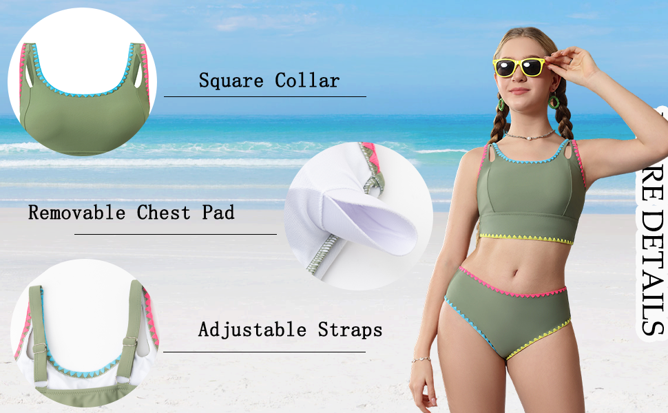 • تصميم أنيق بمقاس قابل للتعديل: مصمم بحواف متباينة الألوان وأشرطة كتف قابلة للتعديل لملاءمة آمنة ومخصصة. يشتمل الجزء العلوي من البيكيني على وسادات صدر قابلة للإزالة لمزيد من الراحة والمرونة مع نمو طفلك.