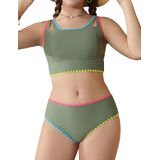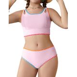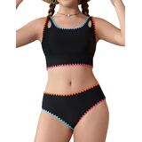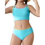 ملابس سباحة للفتيات مكونة من قطعتين بيكيني بأشرطة قابلة للتعديل مع وسادة صدر ملابس سباحة للمراهقين 9-16 سنة in Kuwait