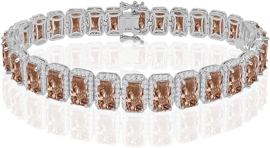 ذهب أبيض عيار 14 قيراط/زركونيا توباز بني 7.5 بوصة