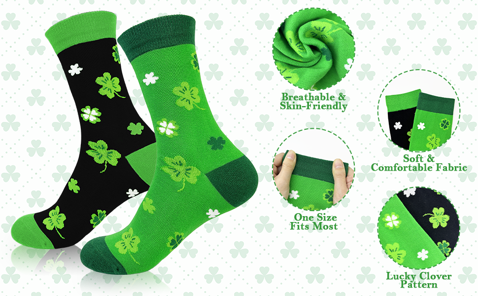 • تصميم شامروك - أنماط نبات النفل الخضراء الكلاسيكية تجعل هذه الجوارب إكسسوارًا مبهجًا لعيد القديس باتريك للمناسبات المدرسية وحفلات المكتب واحتفالات العطلات.