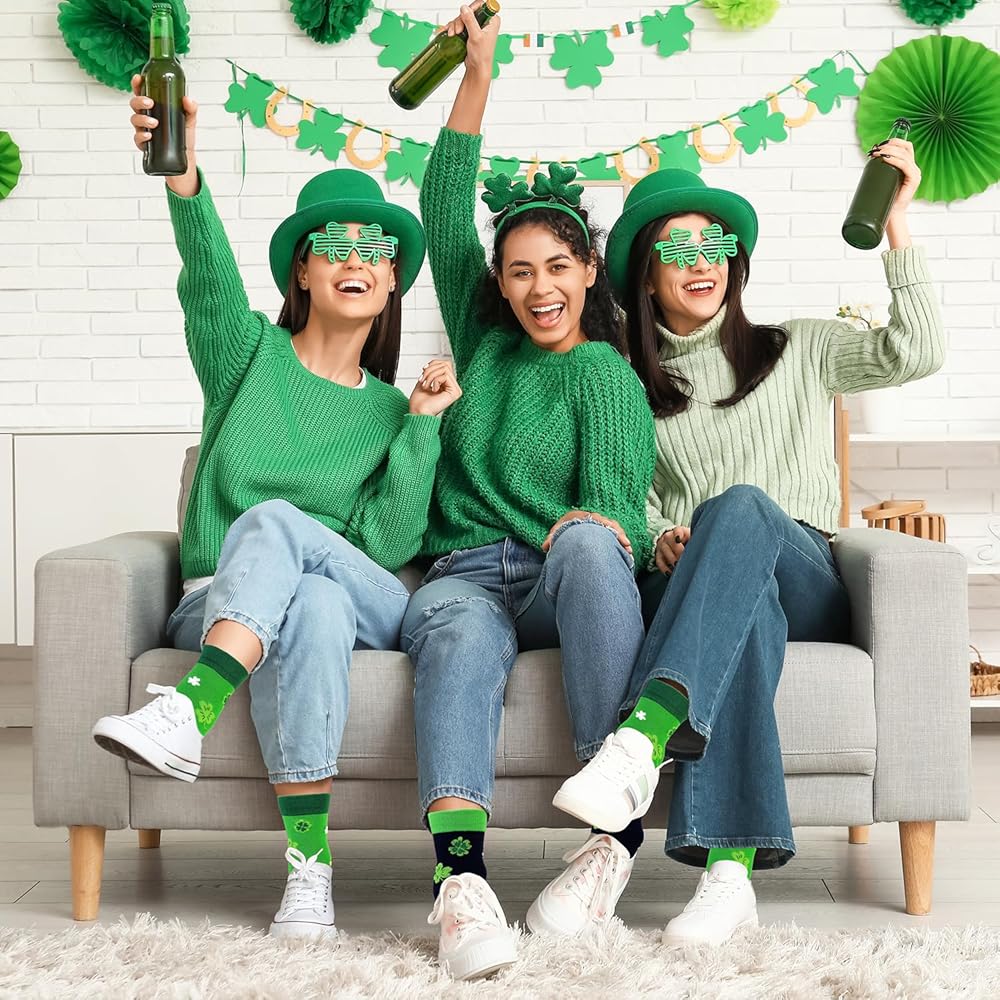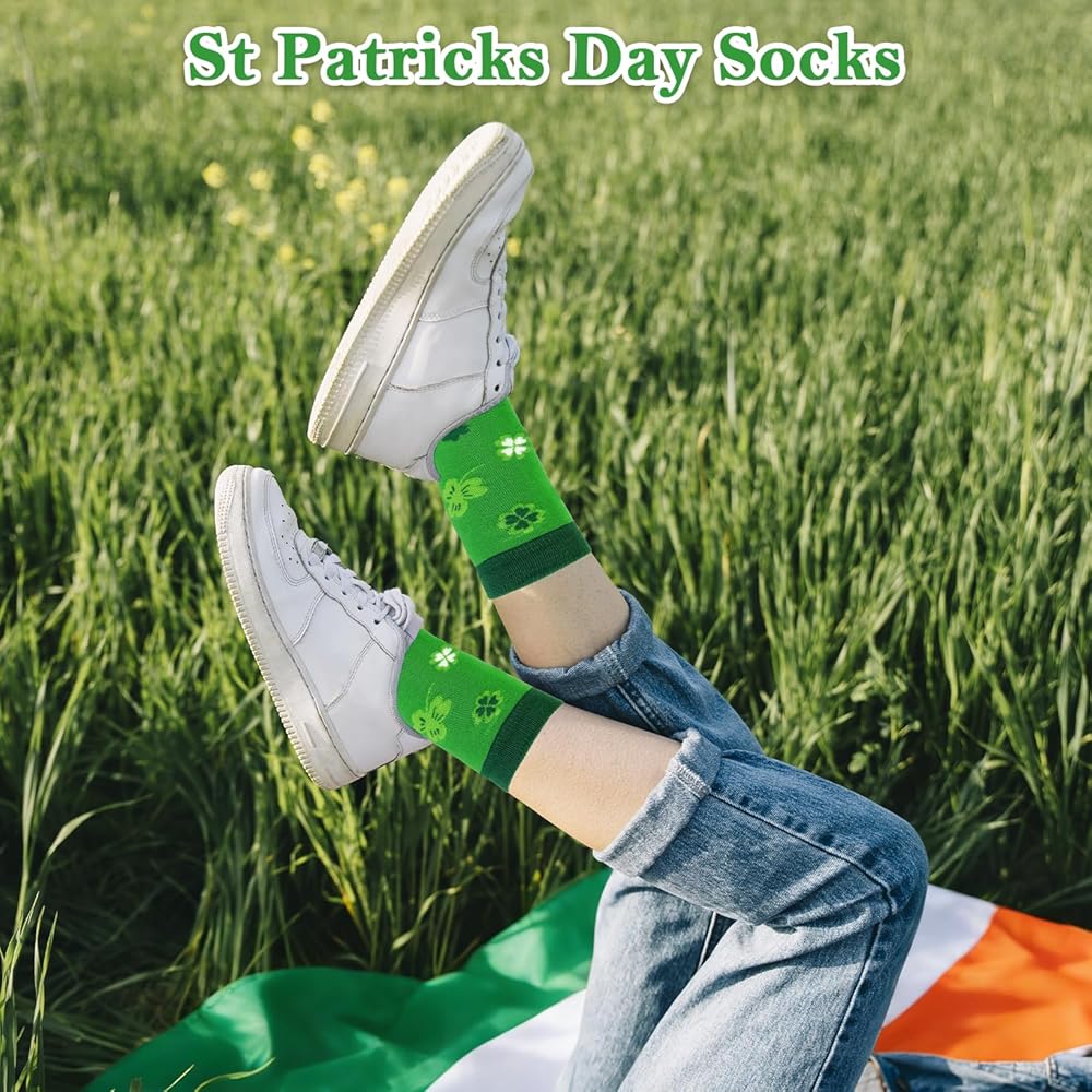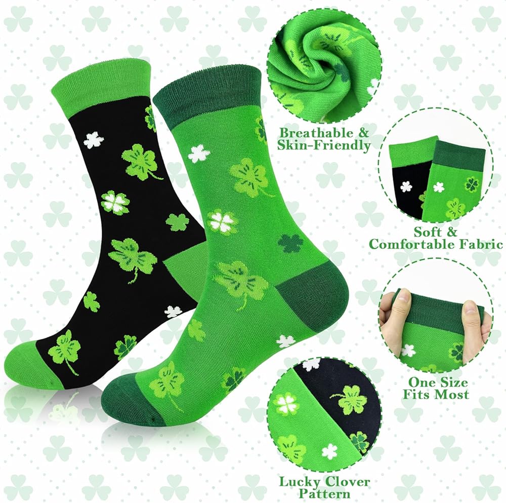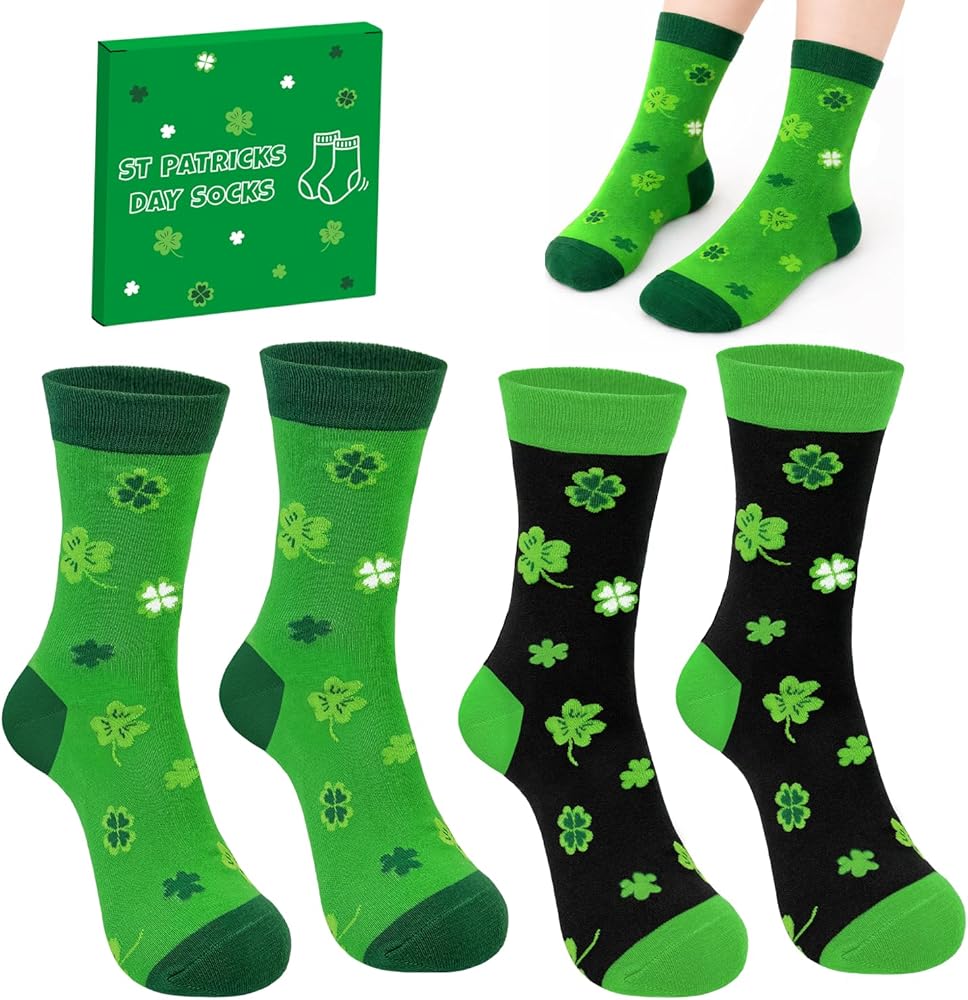 جوارب عيد القديس باتريك للنساء والرجال، زوجان من جوارب شامروك الأيرلندية، إكسسوارات ملابس عيد القديس باتريك الخضراء، هدايا عيد القديس باتريك للبالغين وزملاء العمل والمعلمين والأصدقاء