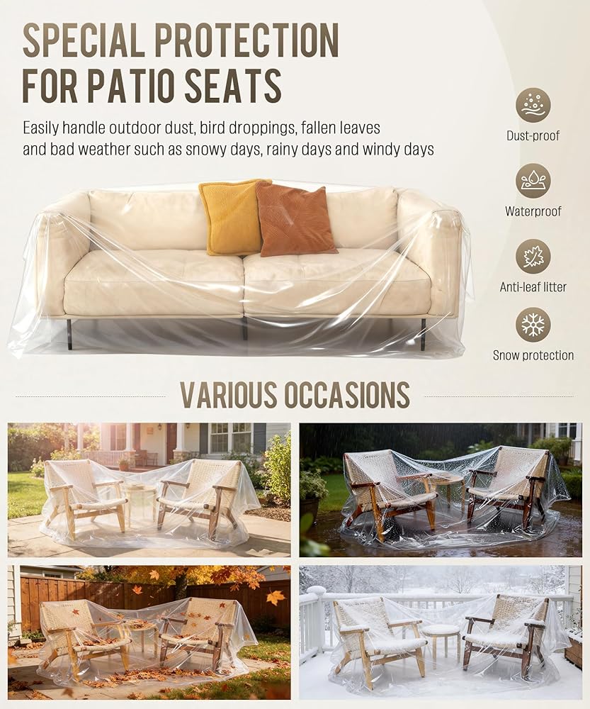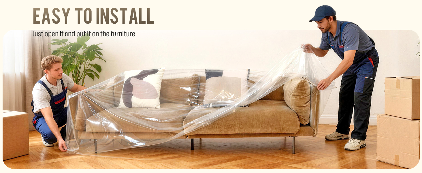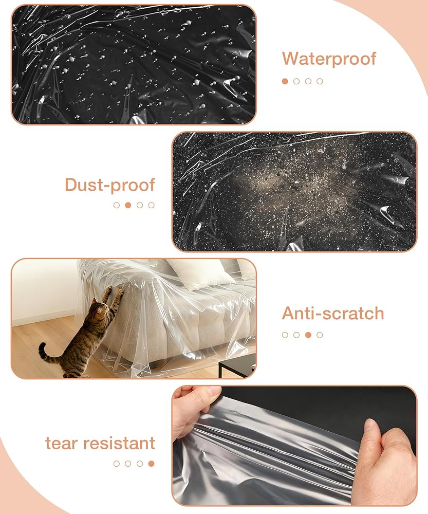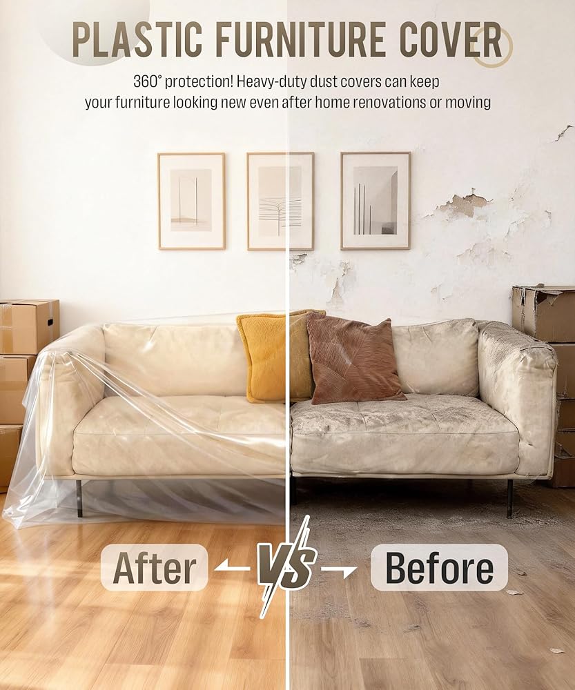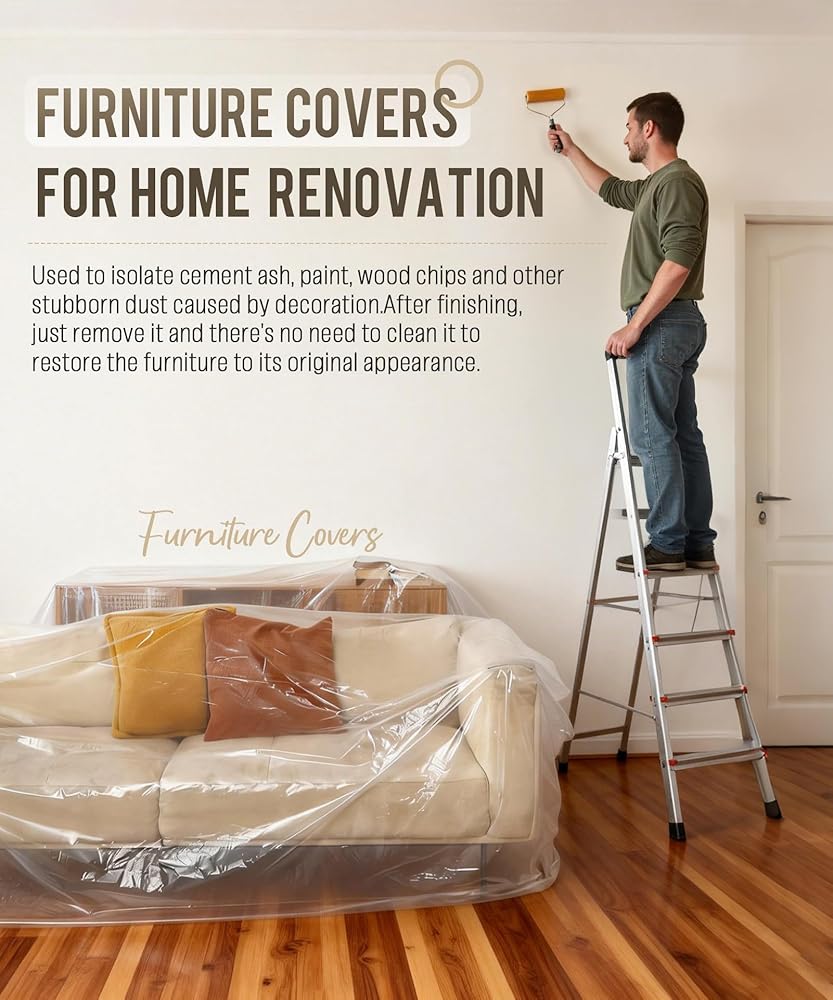 حماية 360 درجة: يمكن لغطاء غبار الأثاث أن يحمي أريكتك بالكامل، والأريكة المقسمة، وأثاث الفناء الخارجي وبعض الأثاث في نطاق الحجم من الحركة/الخروج/تزيين الغبار والطلاء