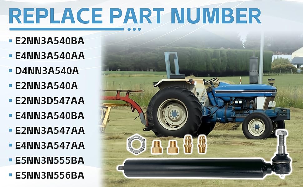 E2NN3A540BA أسطوانة التوجيه الكهربائية 1/2 بوصة، 7/16 بوصة خيط متوافق مع Ford & New Holland Tractor 2000 2600 3000 3600 4000 4600 سلسلة استبدال D4NN3A540A E4NN3A540AA E2NN3A540BA E2NN3D547AA