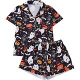 【تصميمات رائعة】تتميز ملابس النوم المريحة للهالوين بأنماط مخيفة نابضة بالحياة ولطيفة مثل القرع والأشباح، مما يضيف متعة احتفالية إلى مجموعة ملابس نوم الهالوين الخاصة بك - مثالية للحفلات أو الليالي المريحة فيها.