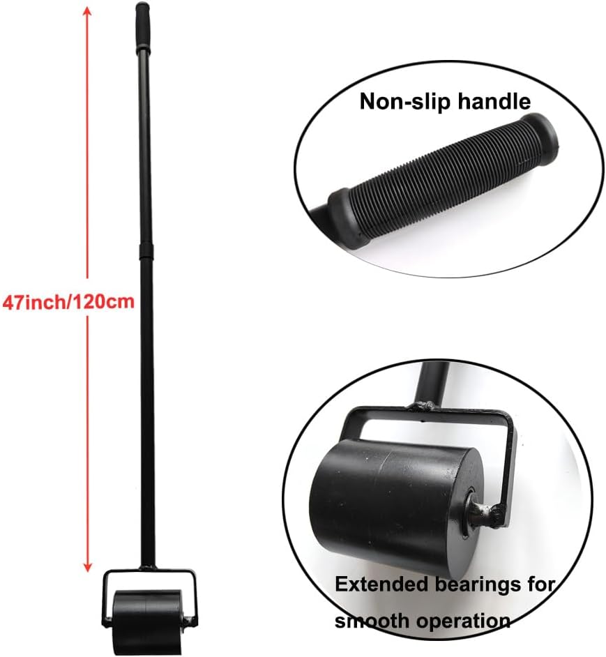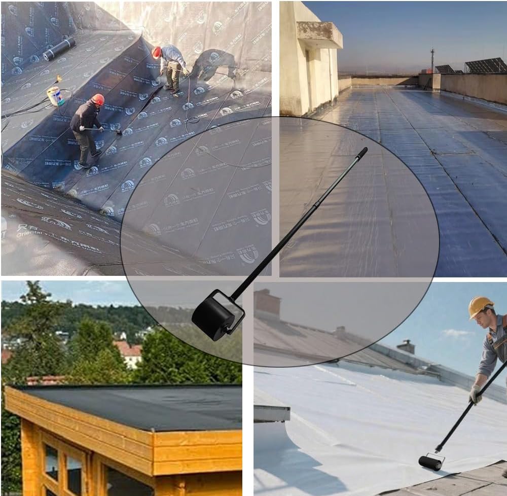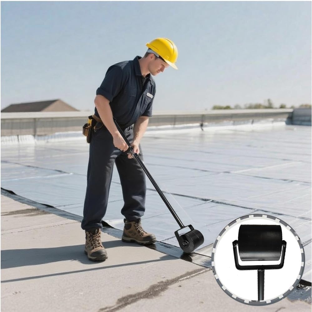 Heavy-Duty Roof Seam Roller,an essential toll for waterproofing contractors and roofing professional. 1.Features a solid steel roller core for extreme durability and long service life 2.Extended handle design allows standing operation without bending 3.Easy to assemble/disassemble for convenient transportation and jobsite use 4.Large 4.33" (110mm): Optimized for heavy-duty seam pressing
