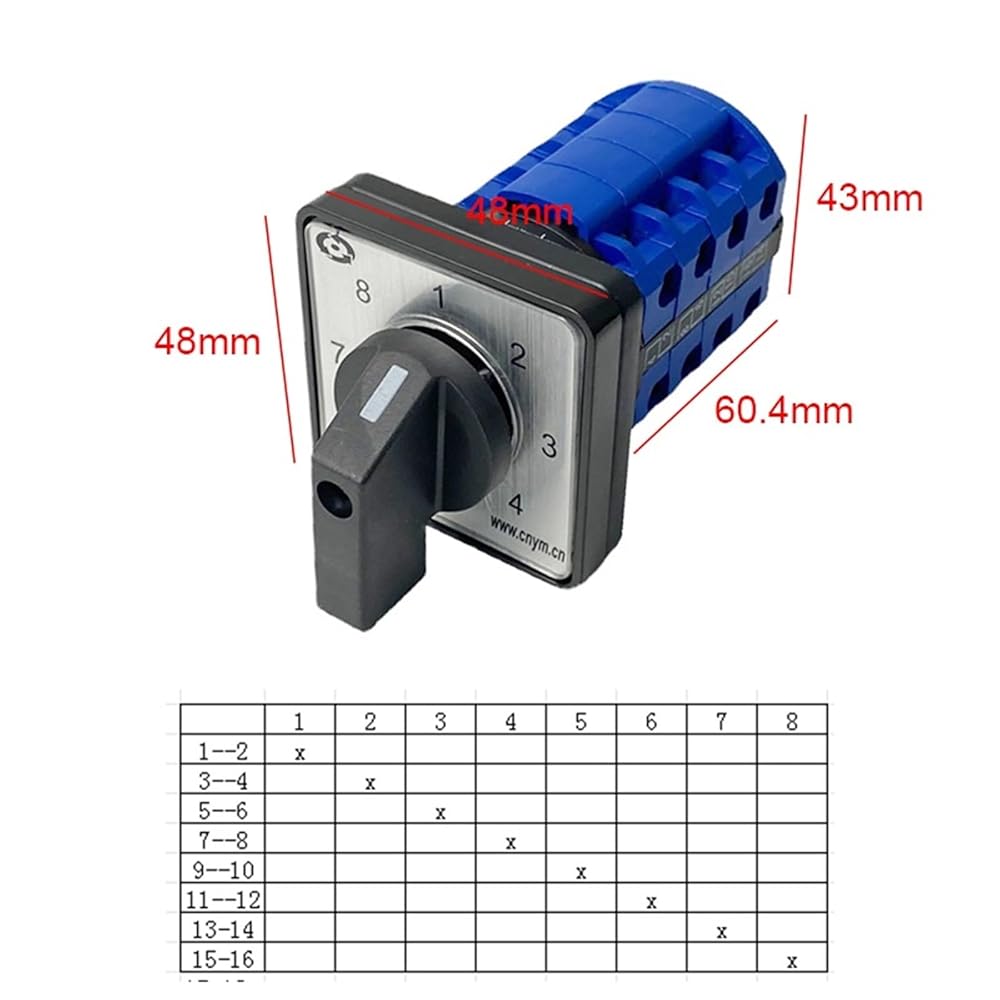 • Electric LW39B-16/4 Changeover Rotary Cam Switch 690V 16A 4 Poles 8 Position 16 Terminals Control Motor LW26