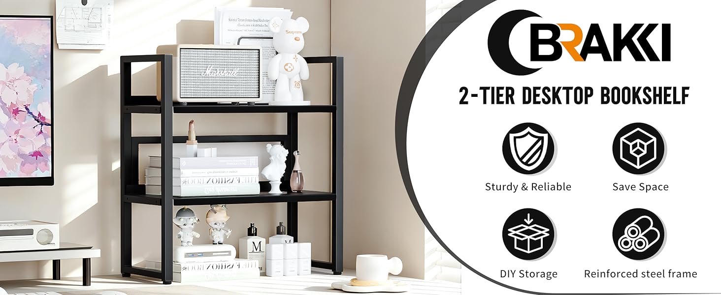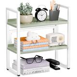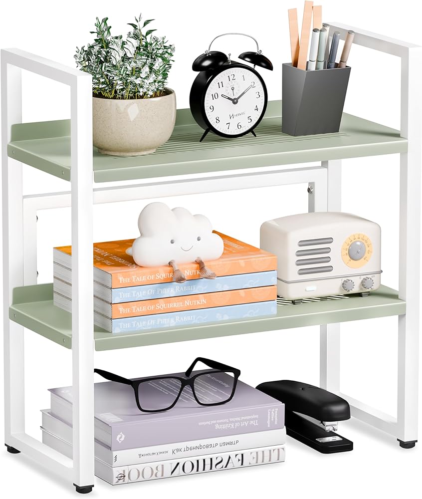 [توفير مساحة تخزين]: يتميز منظم المكتب هذا بطبقتين من الأرفف، مما يوفر مساحة تخزين واسعة للحفاظ على مكتبك مرتبًا. يمكنك وضع الكتب واللوازم المكتبية والصور والنباتات الصغيرة في الأصيص والمزيد على الرفوف، مما يحافظ على مكتب نظيف ومنظم مع ضمان سهولة الوصول إليه