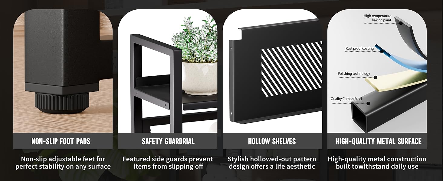 [قوي ويدوم طويلاً]: رف المكتب هذا مصنوع من الفولاذ عالي الجودة مع سطح أملس يقاوم التشوه، مما يضمن الاستخدام طويل الأمد. يوفر الهيكل المعدني قدرة تحمل قوية ويظل ثابتًا دون اهتزاز. حصيرة قدم مضادة للانزلاق تحمي سطح المكتب من الخدوش والتآكل