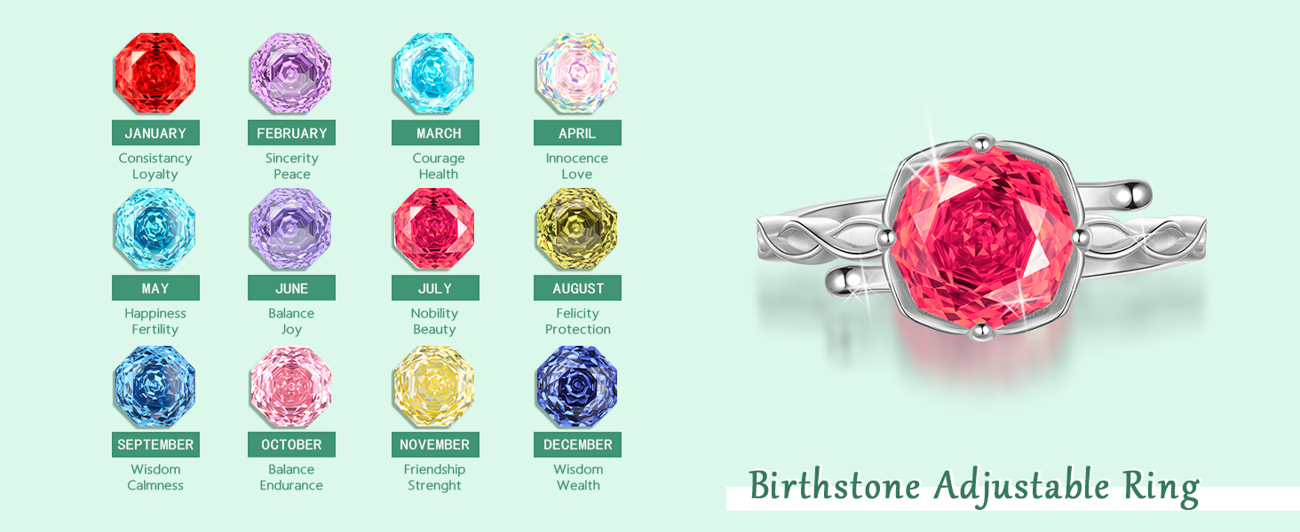 خاتم جوهرة الميلاد من الفضة الإسترلينية 925 المضاد للحساسية مصنوع من الفضة الإسترلينية S925 للحصول على جودة دائمة ومقاومة للتشويه ومقاومة ممتازة للأكسدة.