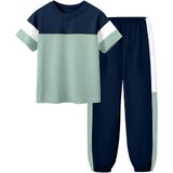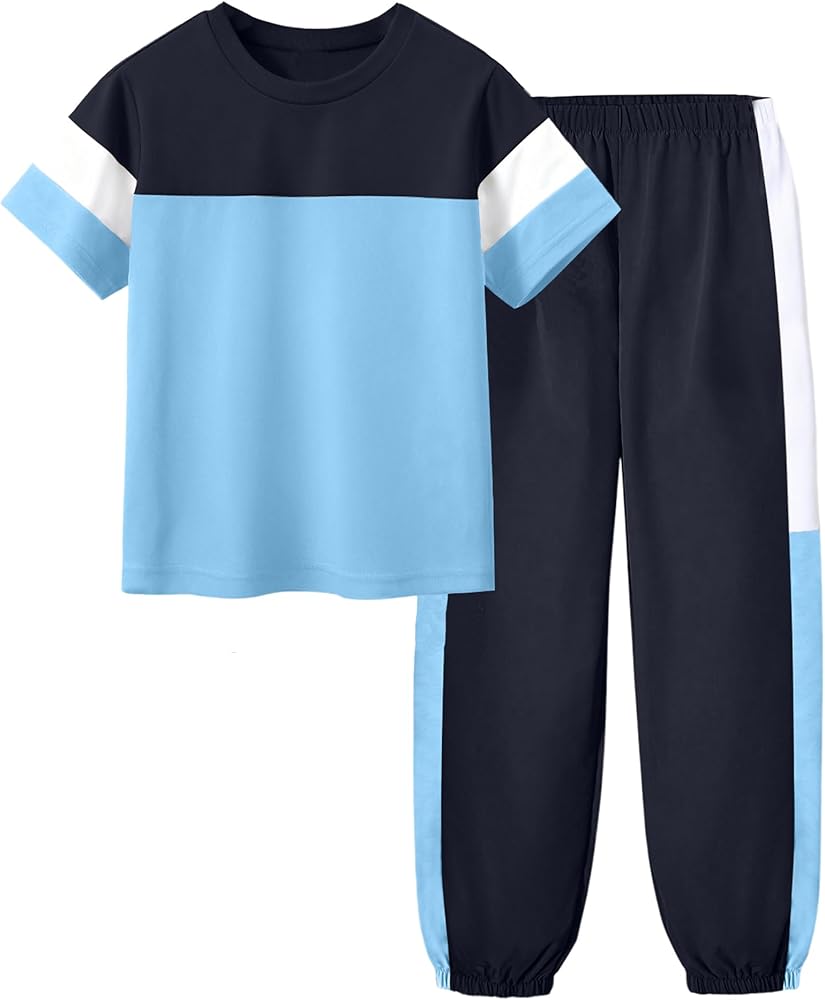 🎨 تصميم عصري بمكعبات الألوان: ملابس للمراهقين - يضيف نمط كتل الألوان الفريد النابض بالحياة على كل من القميص والسراويل مظهرًا جديدًا وحديثًا ومميزًا. إنه الزي المثالي للمدرسة أو مواعيد اللعب أو النزهات العائلية أو أي مغامرة يومية.