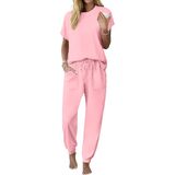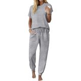 ميزات التصميم: مجموعة Ekouaer المكونة من قطعتين من Pj تتضمن قميصًا بأكمام قصيرة وسروال الركض. خصر مرن مريح، طراز فضفاض وكاجوال، لون ثابت وجيبين جانبيين، يقدم طرازًا عصريًا وكاجوال