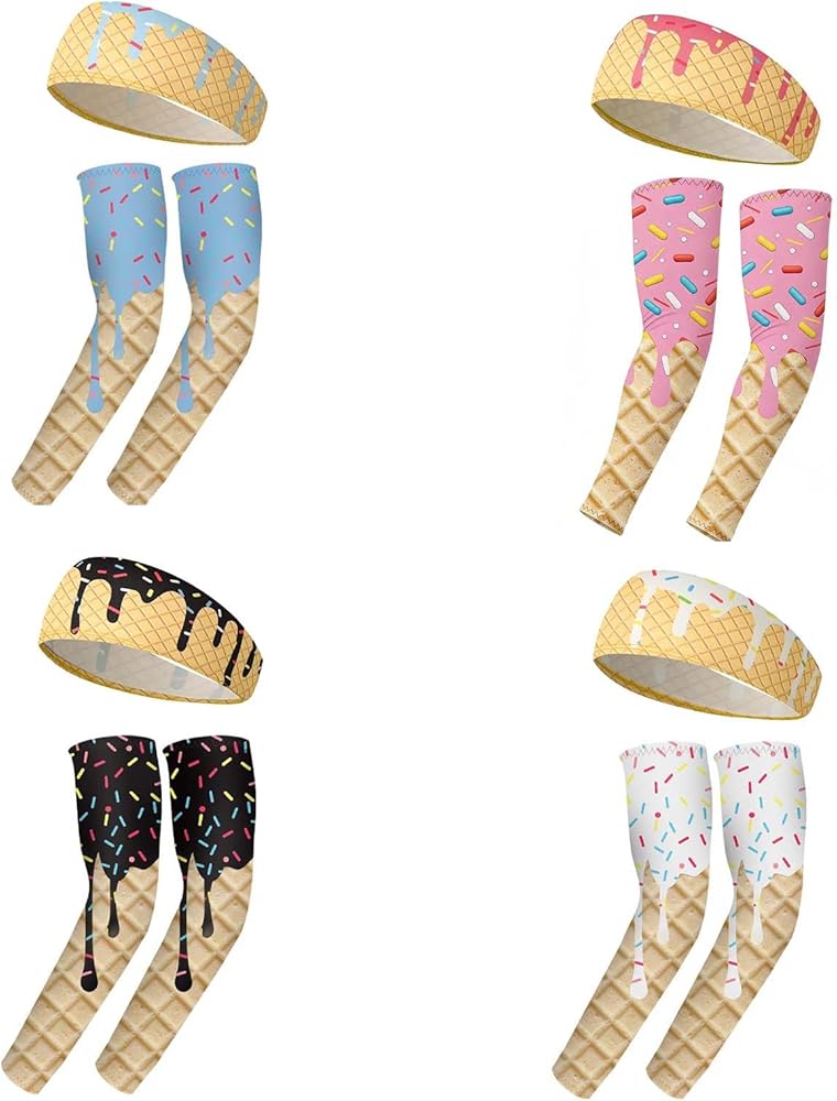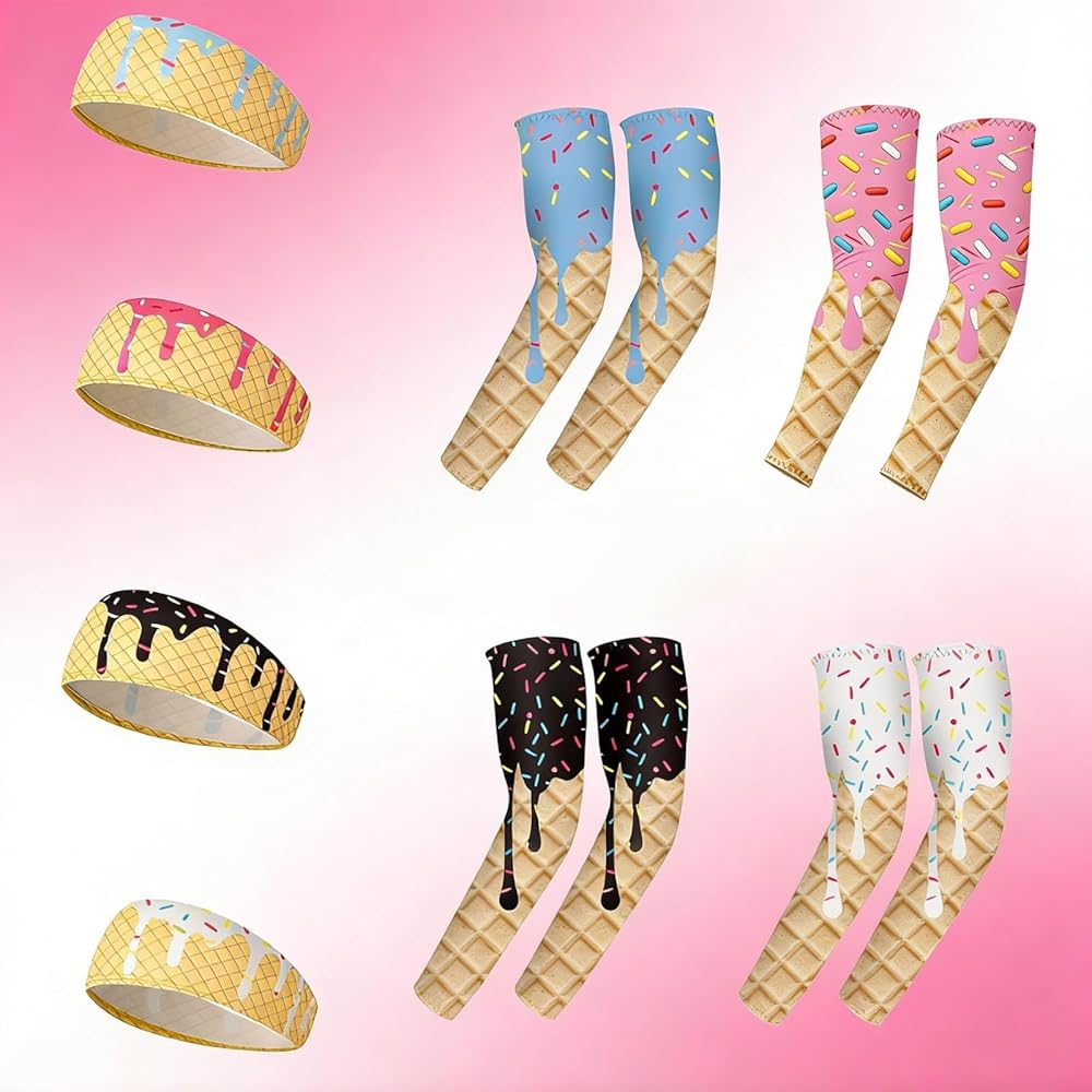 8 قطع من مجموعة آيس كريم البيسبول بالتنقيط، عصابة رأس وآيس كريم بالتنقيط، أكمام ذراع البيسبول للكرة اللينة، معدات الجري الرياضية للأداء للشباب والبالغين