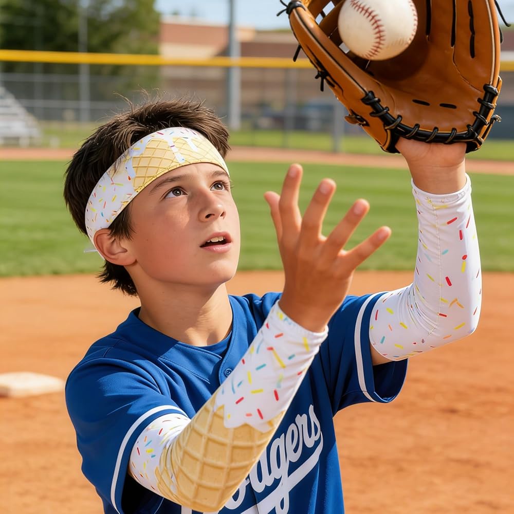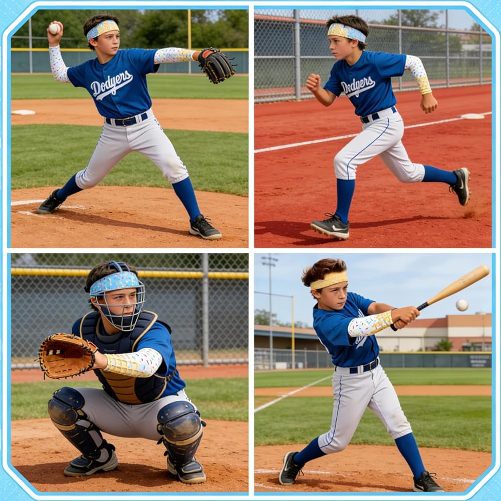 Stay-Put Athletic Fit: Engineered for movement. The headbands feature an elastic stretch that fits most head sizes comfortably without slipping, while the sleeves offer gentle compression to support muscles during baseball, softball, or running.