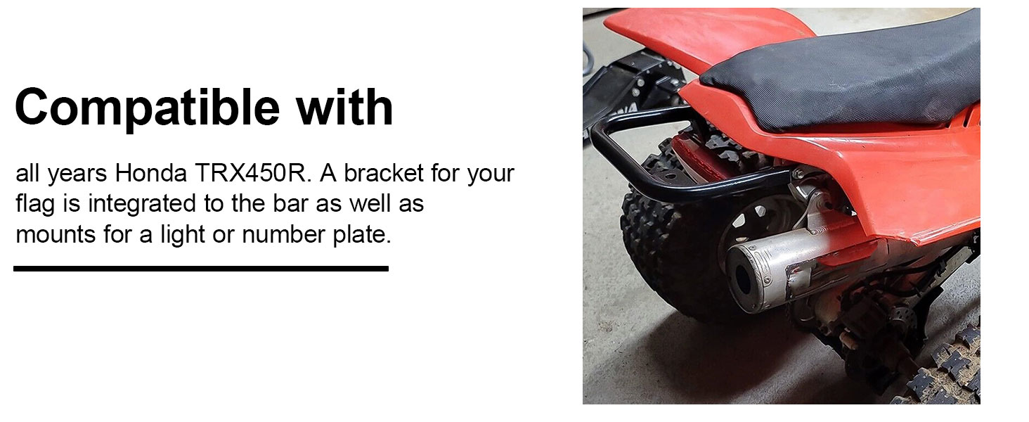 يتوافق مصد قضيب الإمساك الخلفي هذا مع موديلات Honda TRX 450R وTRX450R لجميع سنوات الإنتاج. تأكد من طراز سيارتك (TRX 450R أو TRX450R) قبل الشراء لضمان الملاءمة المناسبة.