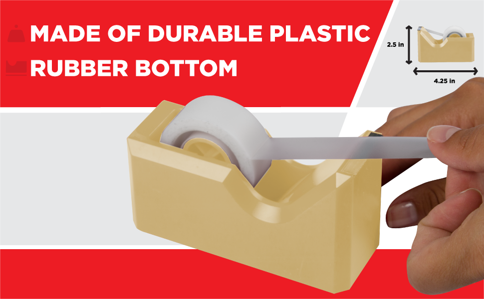 الجزء السفلي من موزع الشريط مثقل ومغطى بالمطاط لمنعه من الانزلاق عند الاستخدام ويجعل من السهل التوزيع بيد واحدة. (الشريط غير مدرج)