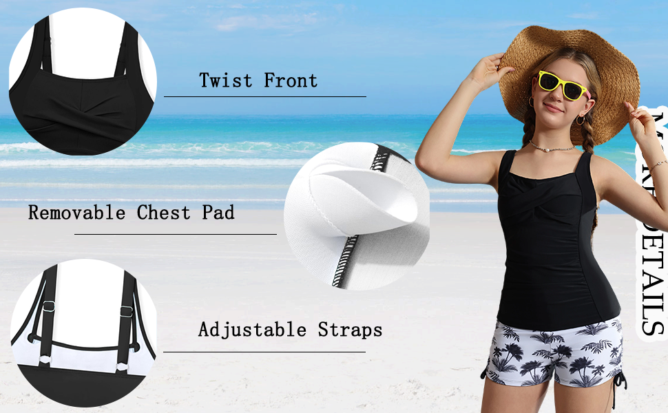مجموعة السباحة المكونة من قطعتين: تتضمن قطعة علوية تانكيني واحدة بلون سادة وقطعة سفلية مطبوعة برباط للسباحة. يسهل تنسيقه مع القبعات أو النظارات الشمسية أو أغطية الرأس أو الواقيات من الطفح الجلدي، مما يجعله خيارًا متعدد الاستخدامات لملابس السباحة لمظهر صيفي لطيف ورياضي. سوف تحصل فتياتك على الكثير من الإطراء!