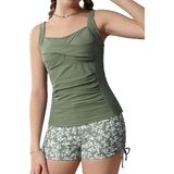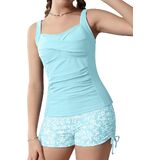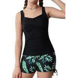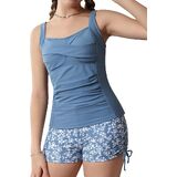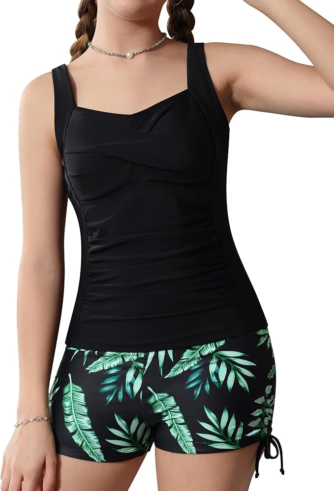 مجموعة تانكيني أنيقة: يتميز قميص تانكيني هذا بخط عنق مربع حديث مع كشكشة أنيقة، وأكواب مبطنة قابلة للإزالة، وأشرطة كتف قابلة للتعديل لملاءمة قابلة للتخصيص. مصممة لتغطية مريحة ومتواضعة تبقى في مكانها دون الركوب. يتميز الجزء السفلي من البكيني عالي الخصر بطباعة استوائية وخصر برباط قابل للتعديل، مما يوفر المزيد من الأناقة والدعم والارتداء الآمن.