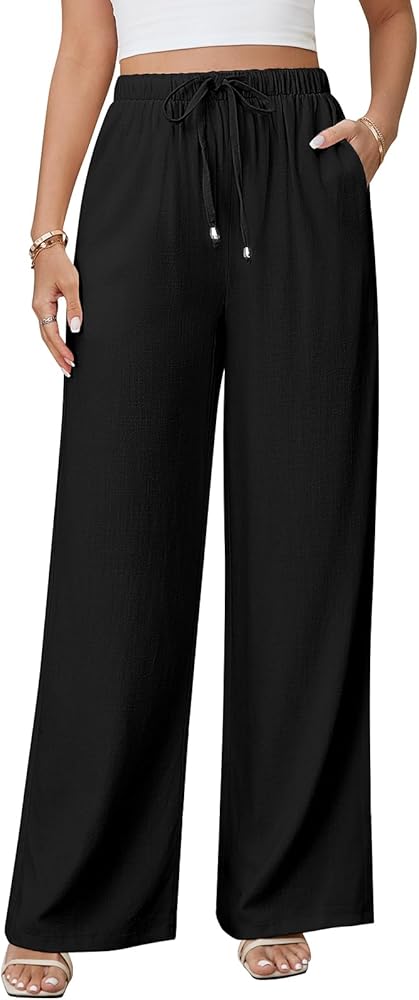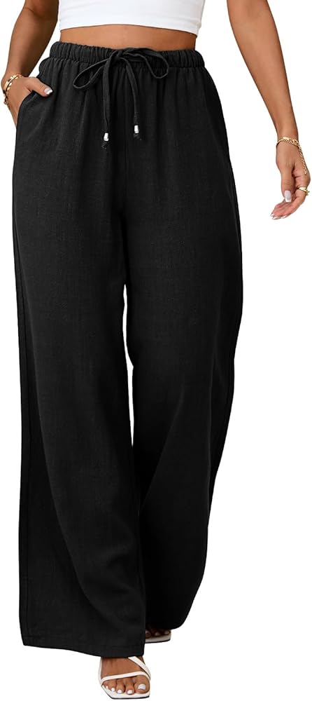 مميزات البنطلون الكتاني واسع الساق: بنطلون كتان أبيض عالي الخصر يتميز بقصة فضفاضة ومريحة مع جيبين جانبيين كبيرين. يوفر التصميم ذو الساق المستقيمة بنطالًا واسعًا ومتدفقًا لمظهر أنيق للنساء. سراويل الكتان النسائية ذات الخصر المرن الفضفاض هي سراويل بوهو بيضاء للشاطئ للنساء، تجمع بين الأناقة والسهولة، مما يجعل السراويل الكتانية متدفقة لطيفة لأي مناسبة.