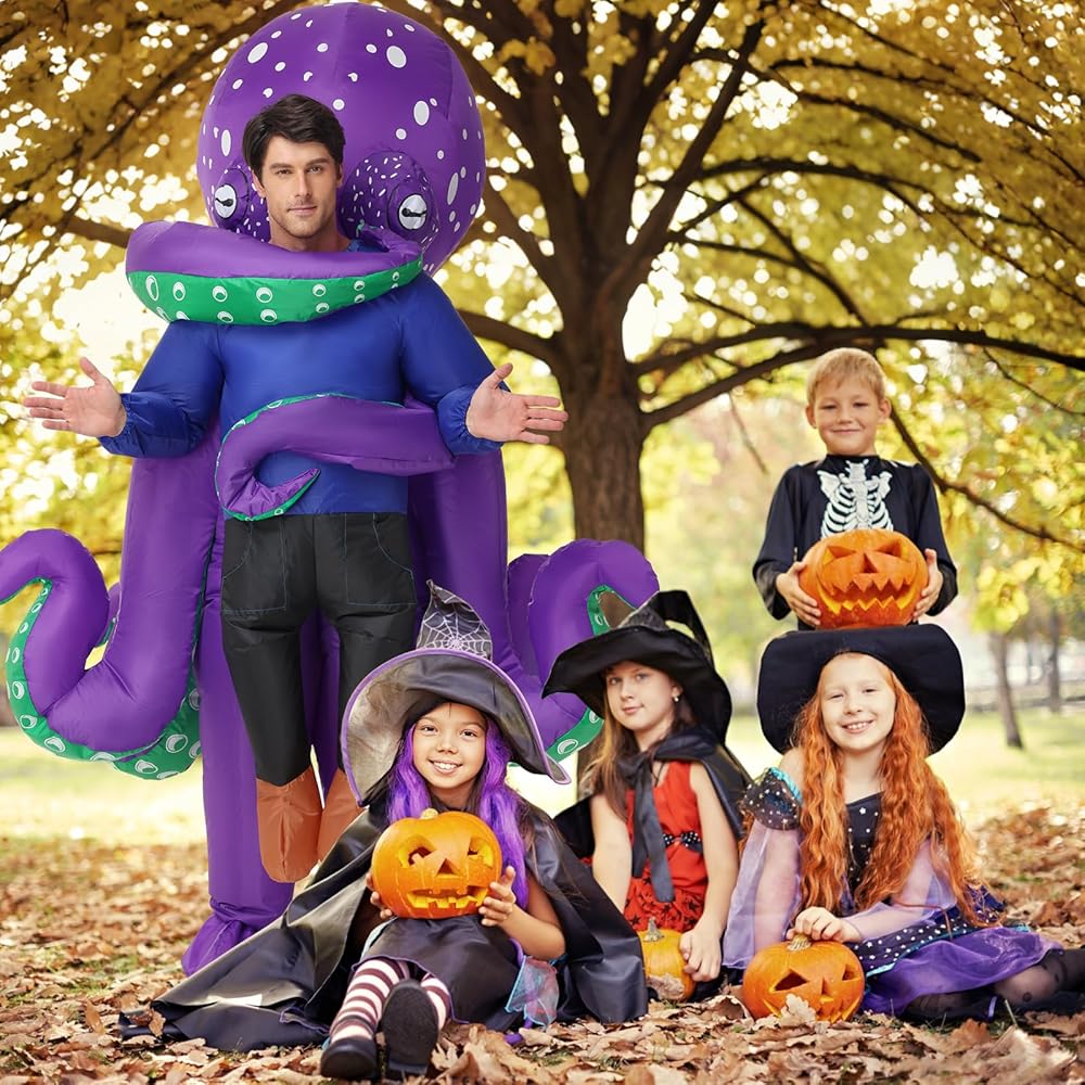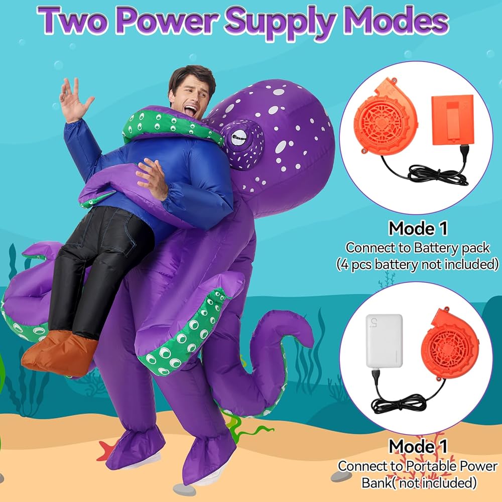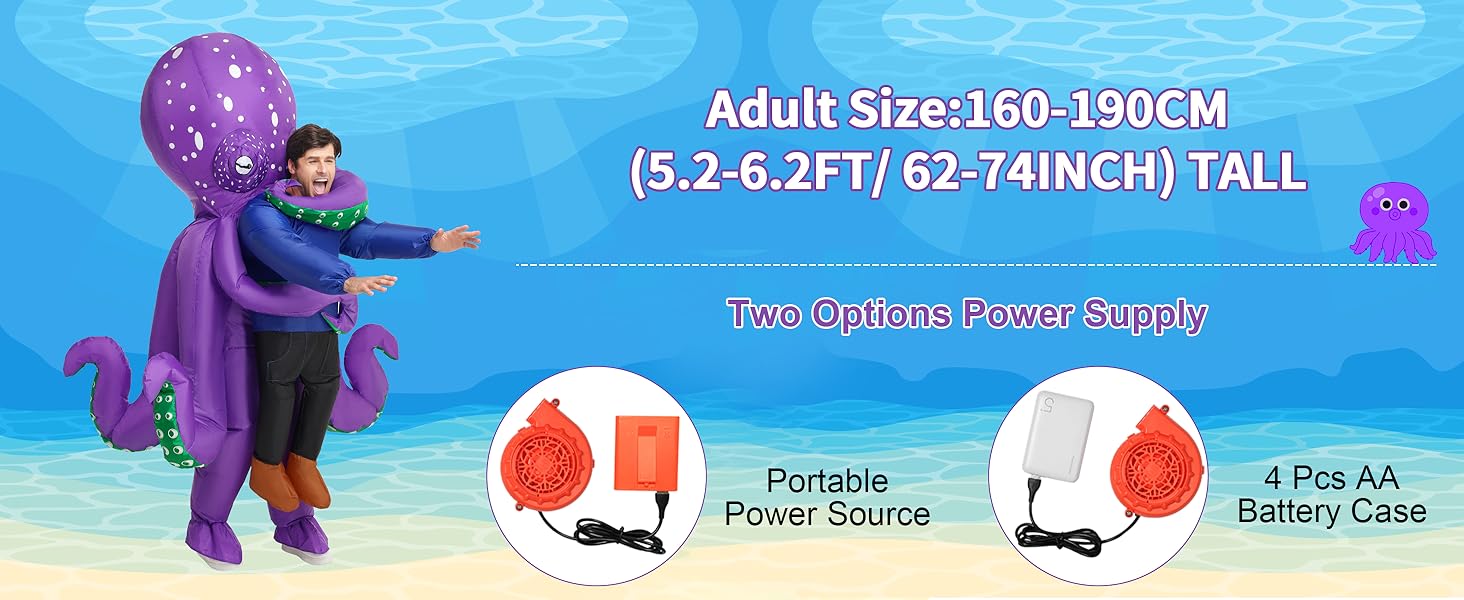 【سريعة النفخ】يأتي زي الأخطبوط القابل للنفخ مع منفاخ قوي ويمكن شحنه بالكامل في دقيقة واحدة باستخدام 4 بطاريات AA (غير متضمنة)؛ للحصول على أفضل النتائج، نوصي باستخدام بطاريات جديدة.