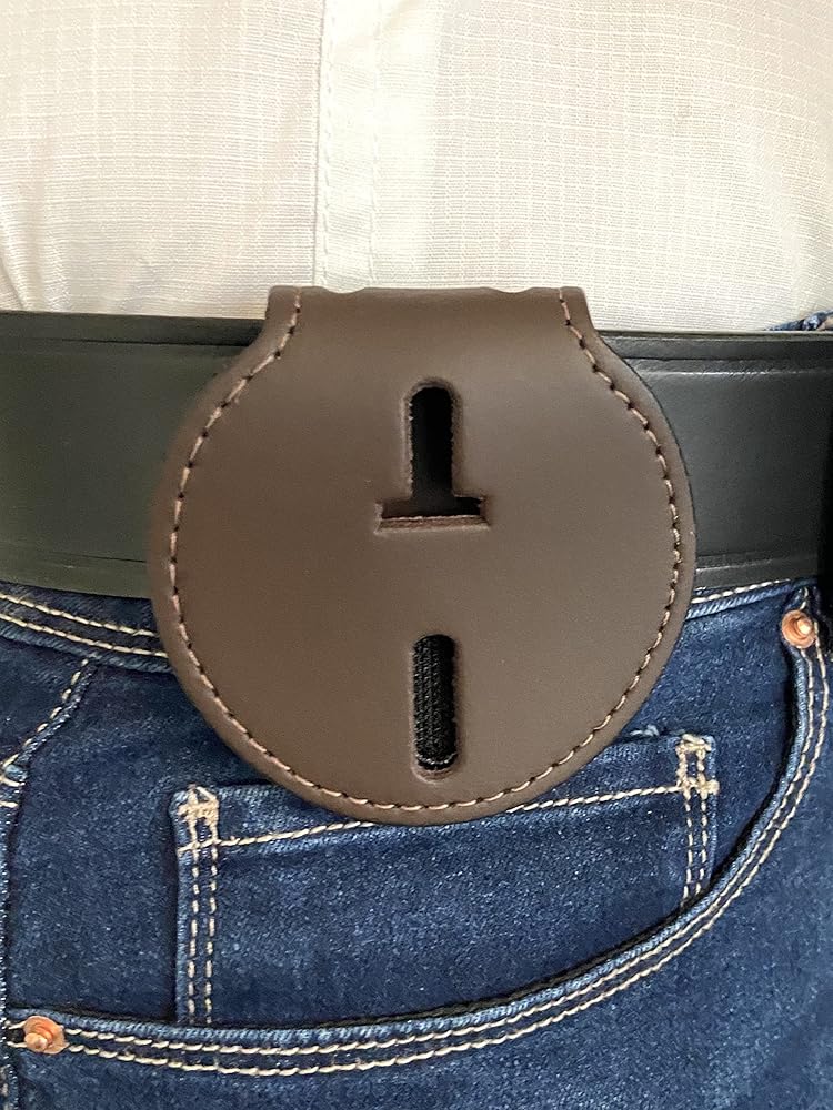 • حامل شارة بمشبك الحزام مصنوع من جلد أصلي عالي الجودة مصبوغ بالطبل مع دعامة واقية للشارات ذات الدبابيس