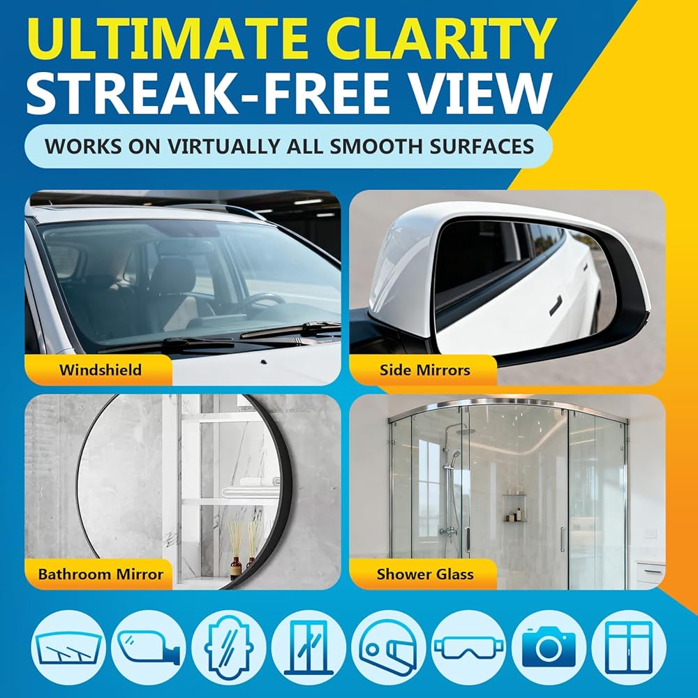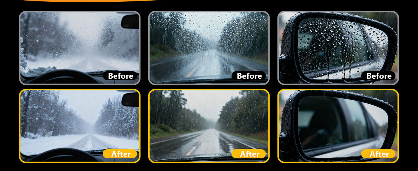 • ✅【فعالية طويلة الأمد】 بعد الاستخدام، يظل الطلاء المقاوم للماء والمضاد للضباب فعالاً لفترة طويلة، مما يضمن الأداء الأمثل في جميع الظروف الجوية. قم بالقيادة براحة البال مع العلم أن زجاجك سيبقى نظيفًا ومحميًا.
