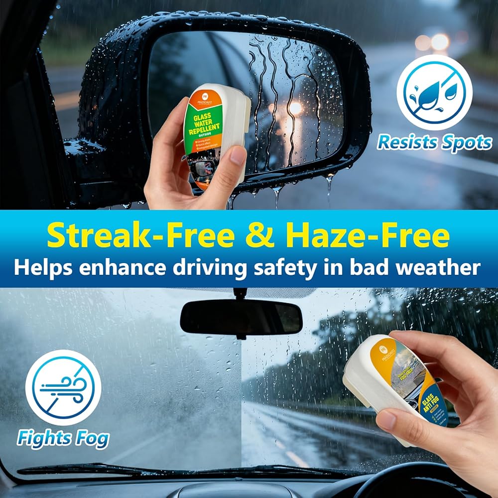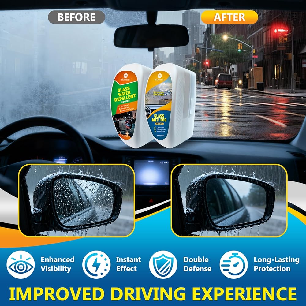 • ✅ 【طلاء طارد للماء لرؤية واضحة 】 طارد الماء للسيارة PRAZISCHUTZ والمضاد للضباب للزجاج الأمامي (WRAF-120) يخلق حاجزًا قويًا كارهًا للماء على زجاج سيارتك. يمنع قطرات الماء من الالتصاق، مما يعزز الرؤية ويقلل الحاجة إلى مسح الزجاج الأمامي بشكل مستمر أثناء المطر أو الظروف الرطبة