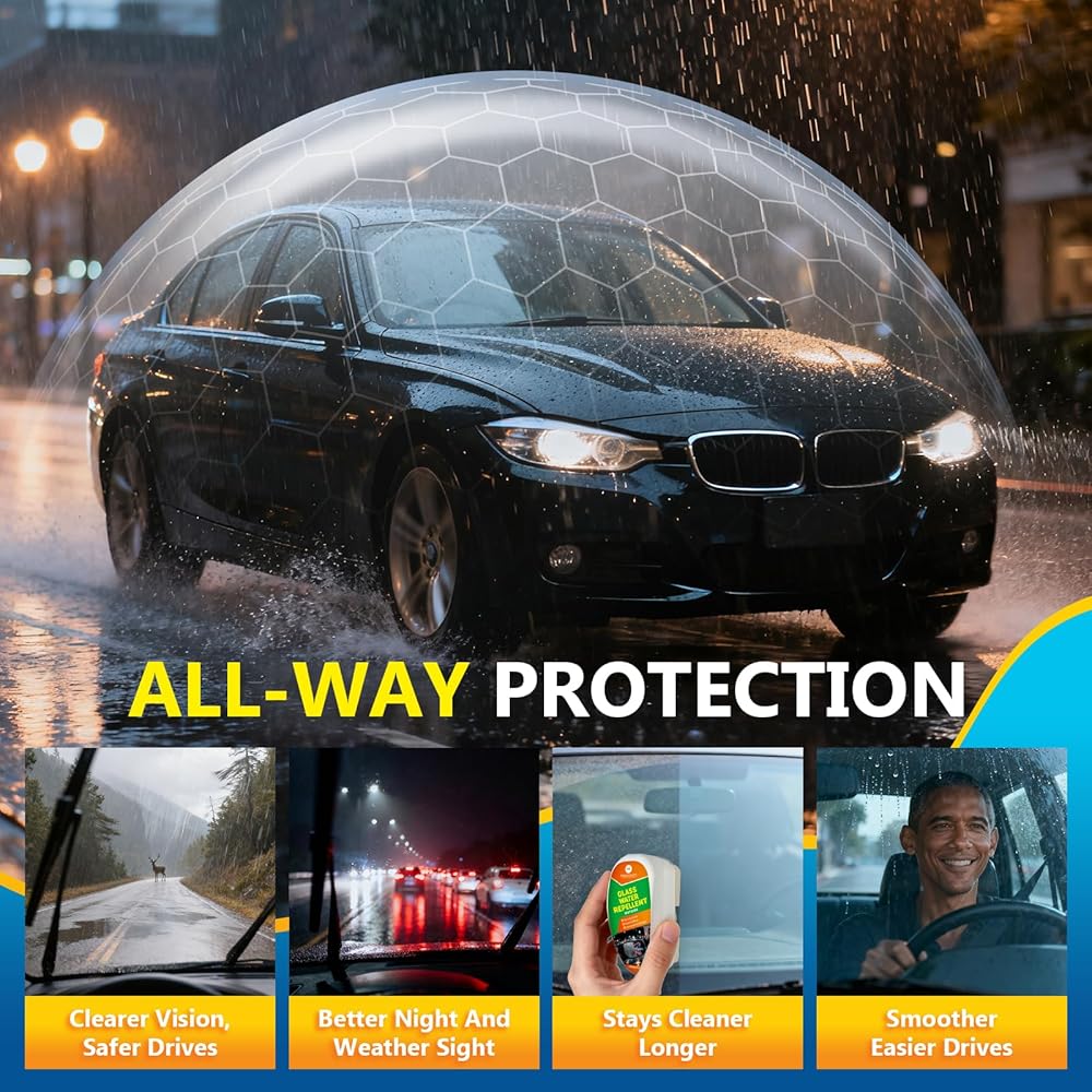 طارد مياه السيارة ومضاد للضباب للزجاج الأمامي - طلاء متطور مقاوم للماء، رؤية واضحة، حماية طويلة الأمد، سهل الاستخدام للسيارات والشاحنات وسيارات الدفع الرباعي