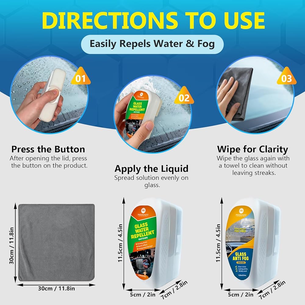 • ✅【تطبيق سهل الاستخدام】 محلول PRAZISCHUTZ الطارد للماء والضباب سهل الاستخدام. ليست هناك حاجة لأدوات متخصصة. ما عليك سوى فرك التركيبة بالتساوي على أي سطح زجاجي، واستمتع بحماية دائمة من الماء والضباب لتجربة قيادة محسنة.