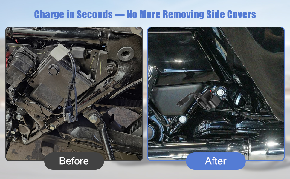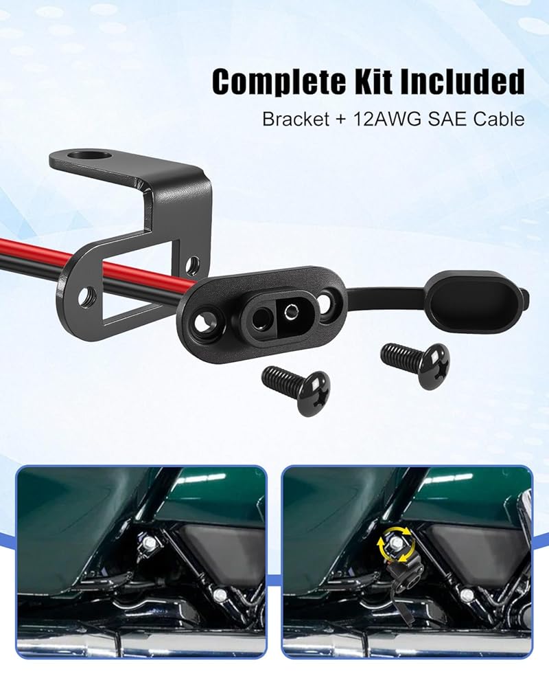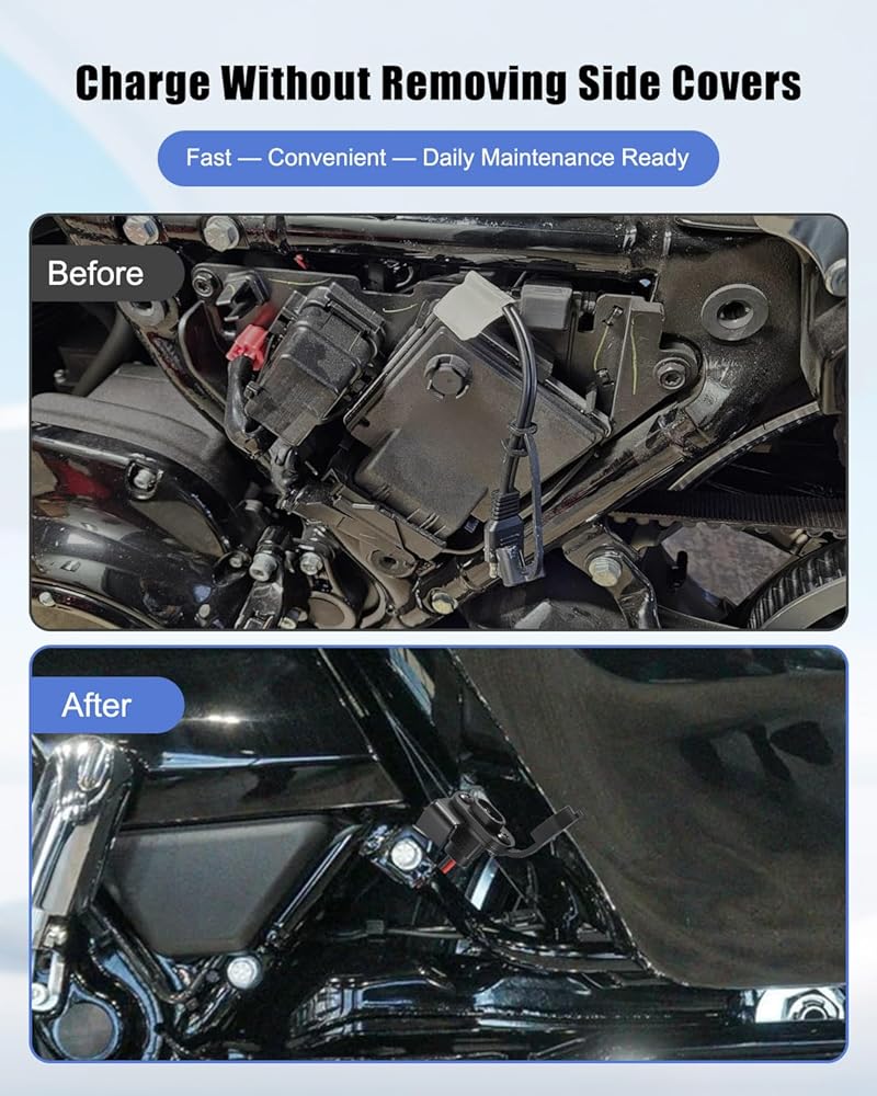 منفذ شحن Stealth مقاوم للطقس: يتميز بمنفذ SAE خارجي مقاوم للعوامل الجوية يسمح لك بتوصيل شاحن البطارية دون إزالة الغطاء الجانبي أو المقعد. ترقية كبيرة للركاب الذين يريدون صيانة يومية سريعة للبطارية دون عناء