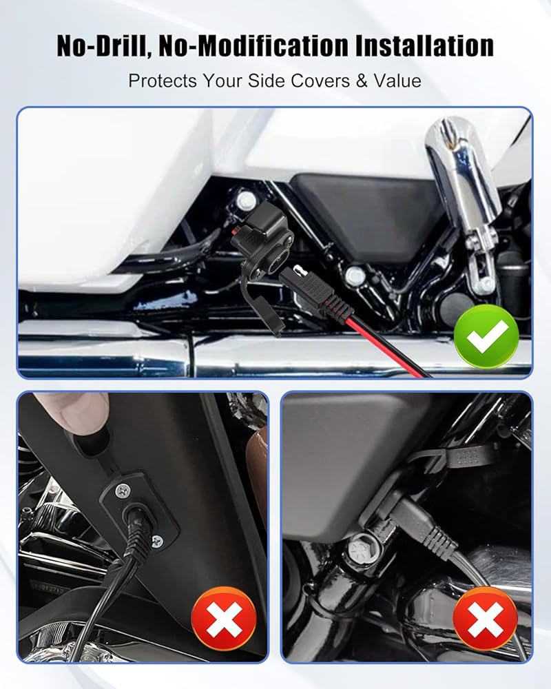 إدارة متكاملة للكابلات من أجل التنظيف: يحافظ حامل الكابل المدمج على سلك الشحن الخاص بك آمنًا ومخفيًا بشكل أنيق، ويمنع الأسلاك المتدلية ويحافظ على مظهر نظيف ومنظم واحترافي على Harley الخاص بك