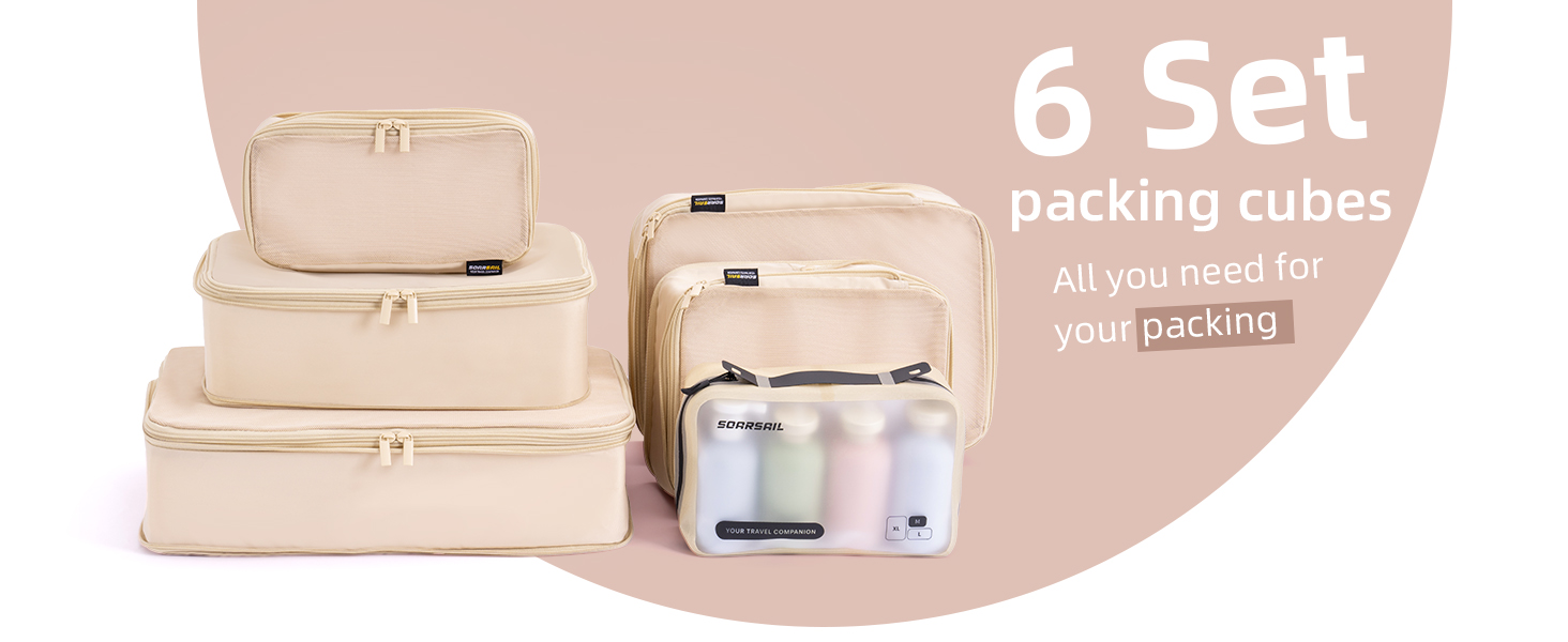 مصممة للسفر لمدة 7 إلى 14 يومًا: تم تحسين كل مجموعة مكونة من 6 قطع لتنظيم الملابس للرحلات التي تتراوح مدتها من 7 إلى 14 يومًا، مما يجعلها مثالية للسفر لفترة أطول. بالنسبة للرحلات العائلية أو الجماعية، يختار العديد من العملاء مجموعات متعددة بحيث يكون لكل مسافر نظام التعبئة المنظم الخاص به.