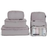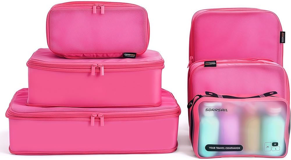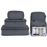 مكعبات تعبئة متعددة الأحجام مع دعم ترميز الألوان: تتضمن XL (17.13 بوصة × 12.2 بوصة) للمعاطف، واثنتان كبيرتان (13.58 بوصة × 9.84 بوصة) للسراويل والسترات، ومتوسطة (13.58 بوصة × 7.09 بوصة) للقمصان، وصغيرة (10.24 بوصة × 4.72 بوصة) للملابس الداخلية؛ شبكة مسامية وخيارات ألوان متعددة تساعد على تحديد المحتويات بسهولة ودعم ترميز الألوان عند استخدام مجموعات متعددة.