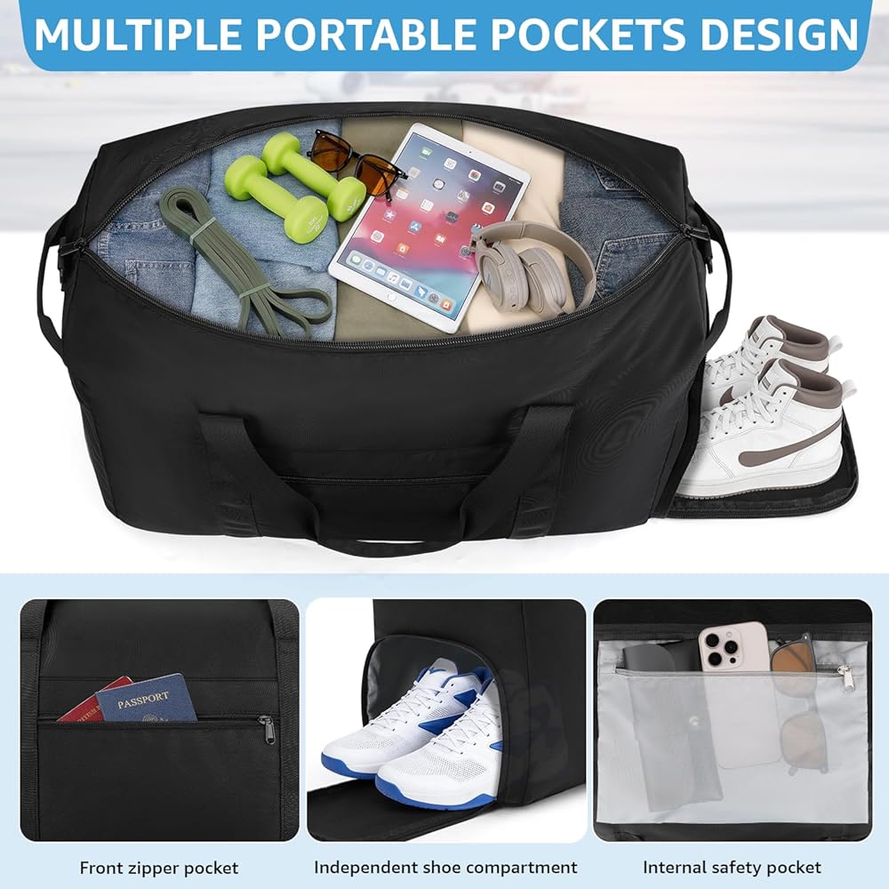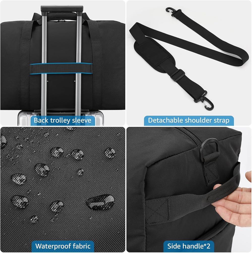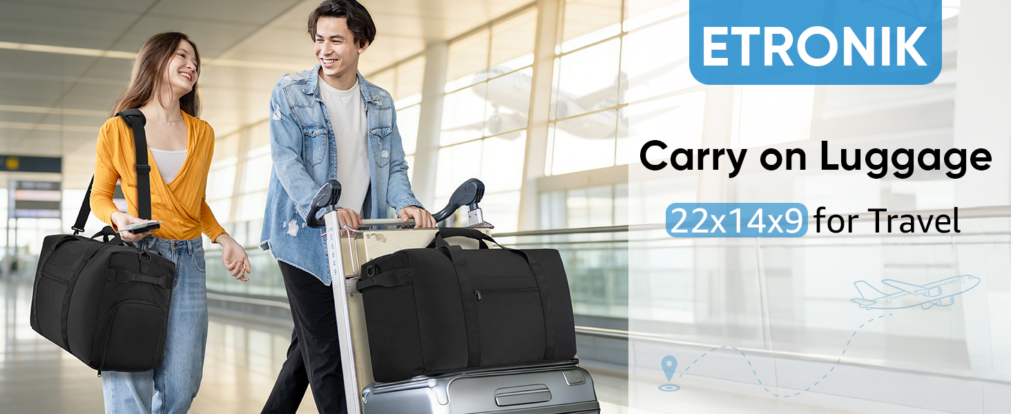 حقيبة ETRONIK للحمل مقاس 22 × 14 × 9 معتمدة من شركات الطيران، حقائب سفر كبيرة سعة 45 لتر مع حجرة للأحذية، حقيبة حمل مقاومة للماء للطائرة، حقيبة دفل للسفر في عطلة نهاية الأسبوع وصالة الألعاب الرياضية الليلية، أسود