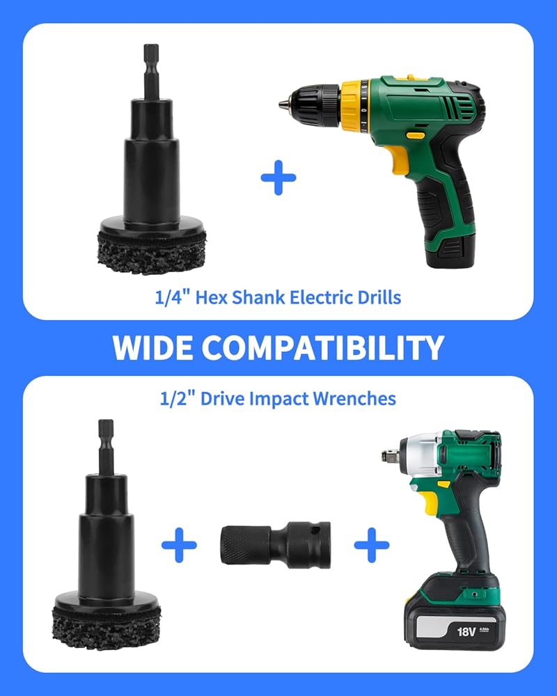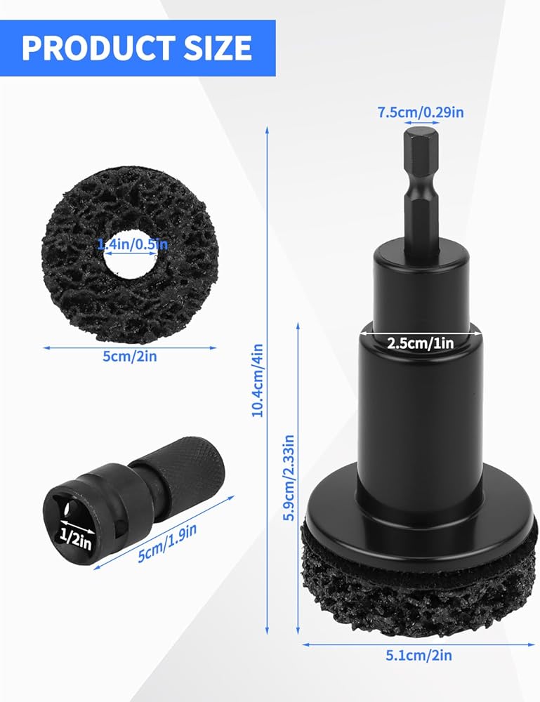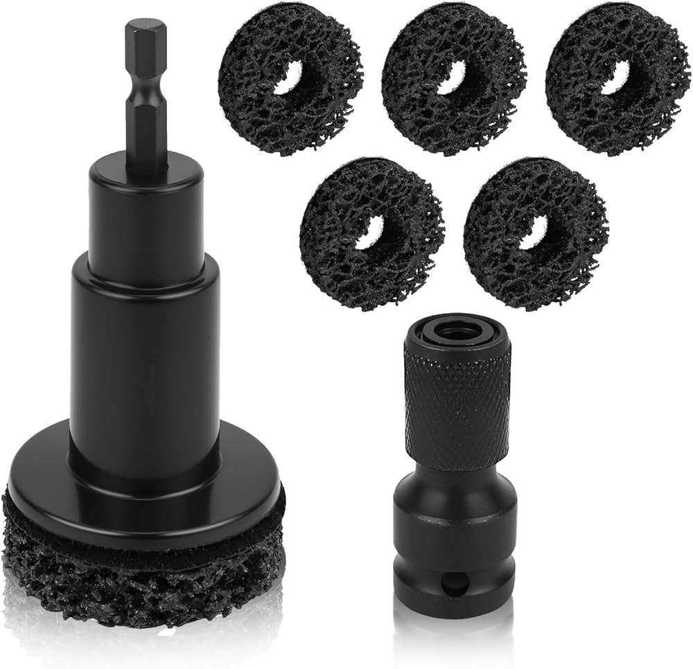 Professional Kit: This wheel cleaning kit includes the main tool and 5 grinding heads. A 1/2-inch adapter is included for direct use with your common electric drill or impact wrench