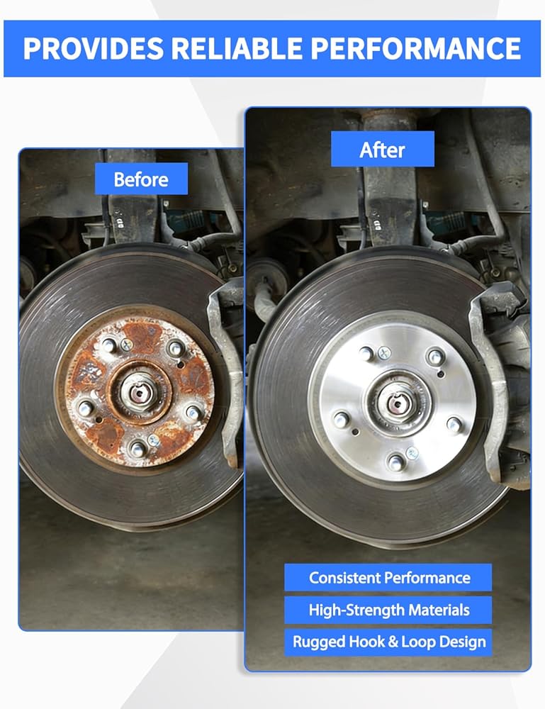 Multi-Purpose Brake Hub Cleaning Tool: This hub cleaning tool tackles rust, corrosion, and burrs on brake components. Use it as a wheel hub cleaning tool to ensure clean surfaces for proper wheel seating and balanced driving