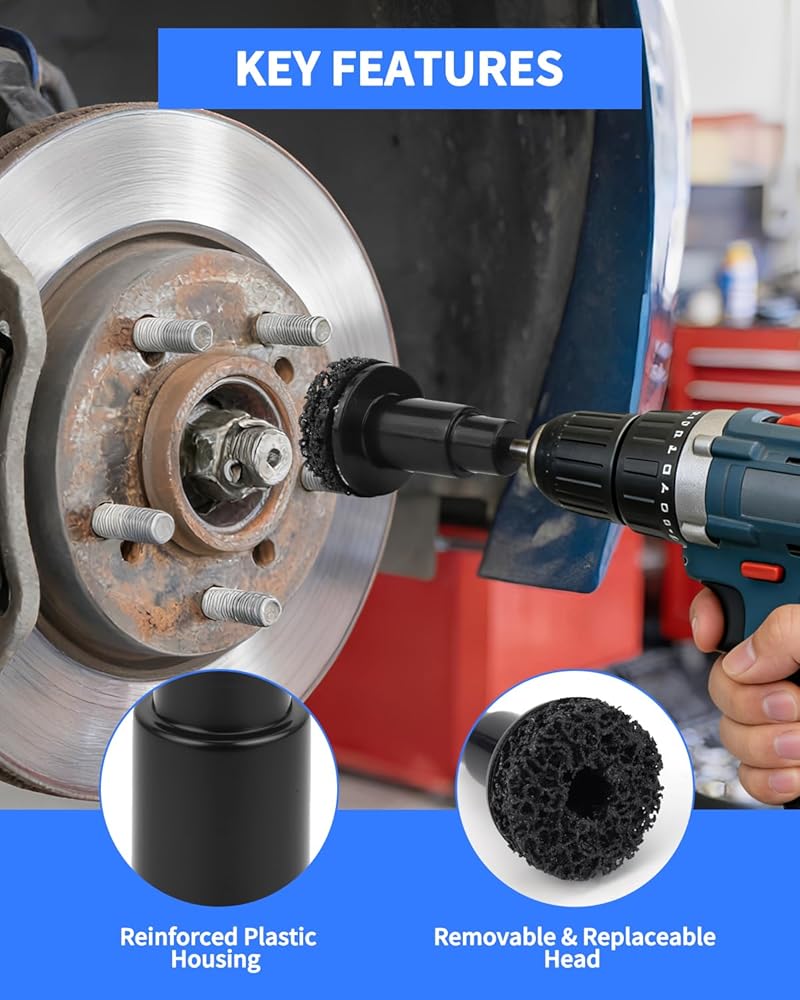 Quick & Easy Setup: Get your brake cleaning job done faster. The tool connects to your drill in seconds, letting you switch from hub cleaning to stud work without stopping to change tools