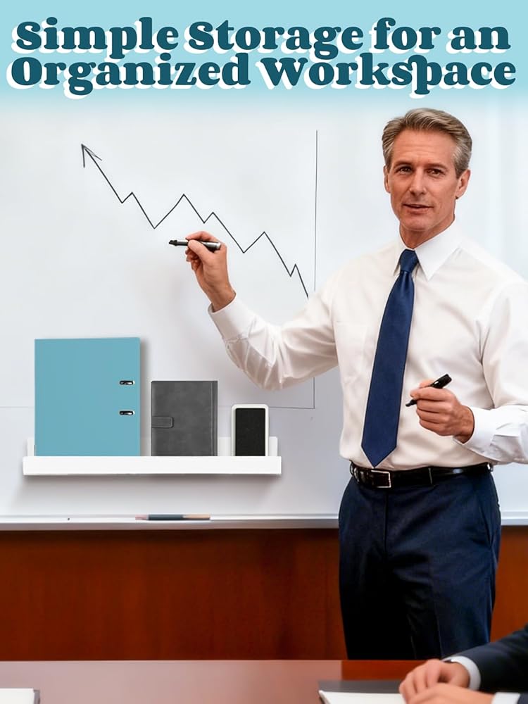 Space-Saving Organization: This whiteboard magnetic shelf adds vertical storage without taking up valuable board space. A clean solution for maximizing display and teaching areas in classrooms and offices