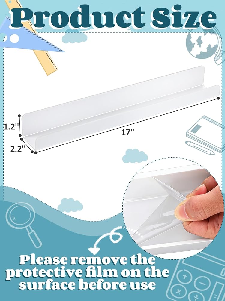 Practical Display Size: Sized at approximately 17 x 2.2 x 2 inches, this acrylic book holder neatly displays textbooks, picture books, magazines, rulers, and erasers—ideal for quick access and organized classroom setups