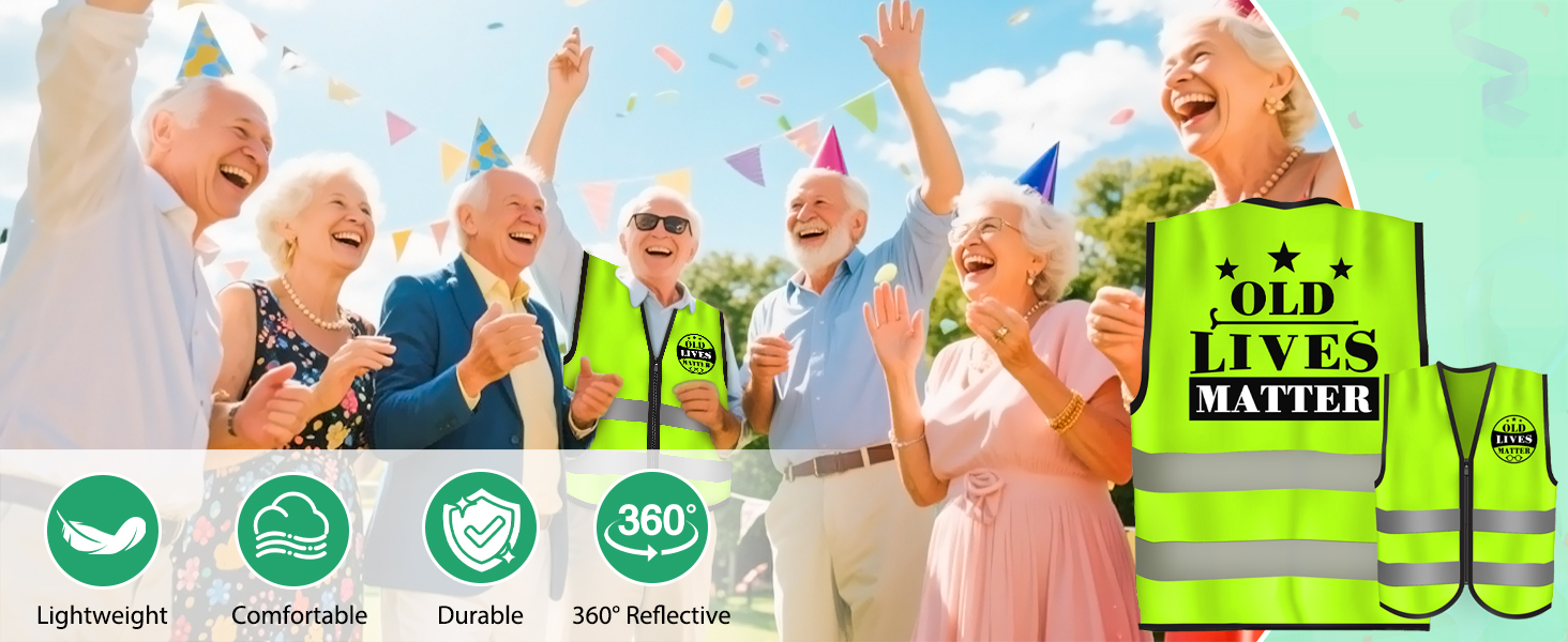 • [تصميم فريد ومبهج] - مطبوعة بعبارة جريئة "OLD LIVES MATTER"، من المؤكد أن هذه السترة ستكون مركز الاهتمام في أي عيد ميلاد أو حفلة تقاعد. فهو يضفي طابعًا مرحًا وخفيفًا على أي تجمع ويجعل ضيف الشرف يشعر وكأنه أحد كبار الشخصيات الحقيقيين — وهو متقاعد مهم جدًا!