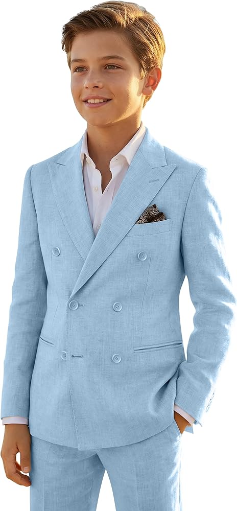 • Linen Boys Suit -- Boys double breasted linen suit jacket and dress pants 2 piece summer suit, with slim fit cut, offer appropriate formality while staying relaxed, and the best balance of style and comfort.