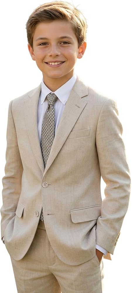 Linen Boys Suit -- Boys linen suit jacket and dress pants 2 piece summer suit, with slim fit cut, offer appropriate formality while staying relaxed, and the best balance of style and comfort.