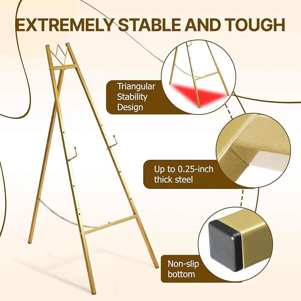 Assembly is a breeze with this easel! Unlike complicated easels that require hours of setup, our gold easel stand comes with clearly numbered parts and step-by-step instructions, letting you put it together in just 5 minutes—no extra tools needed.